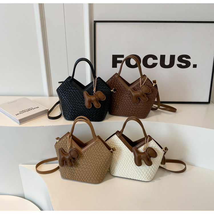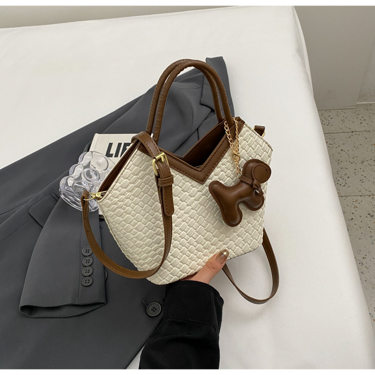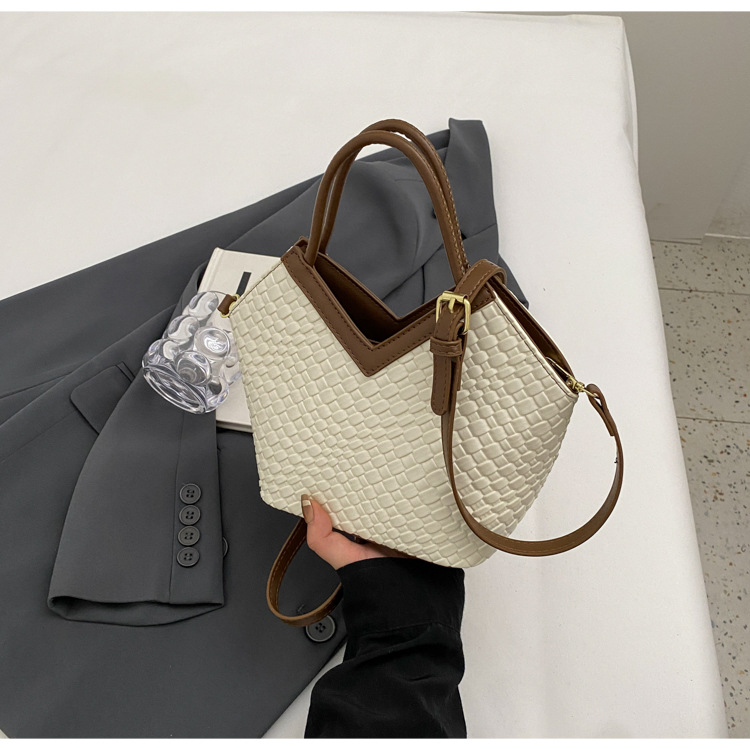 가방 여성의 2024 새로운 어깨 크로스 바디 여성 가방 패션 짠 패턴 인터넷 인기 라이트 럭셔리 하이 엔드 니크 버킷 백
