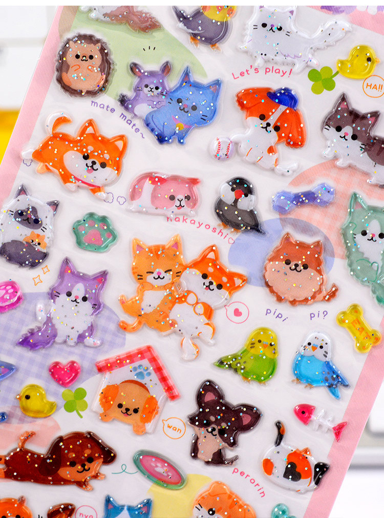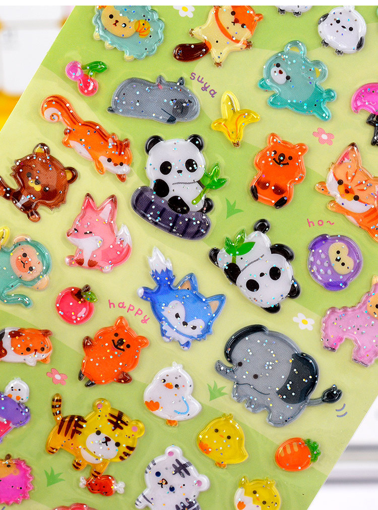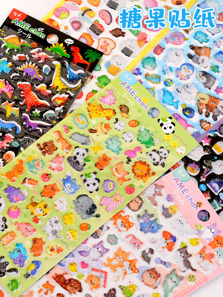 귀여운 어린이 스티커 만화 동물 펭귄 초밥 반짝이 반짝이 크리스탈 사탕 스티커 장식 손 계정 DIY 스티커스토어 가기
