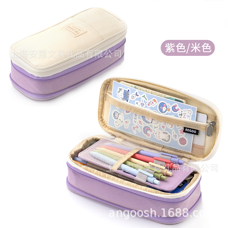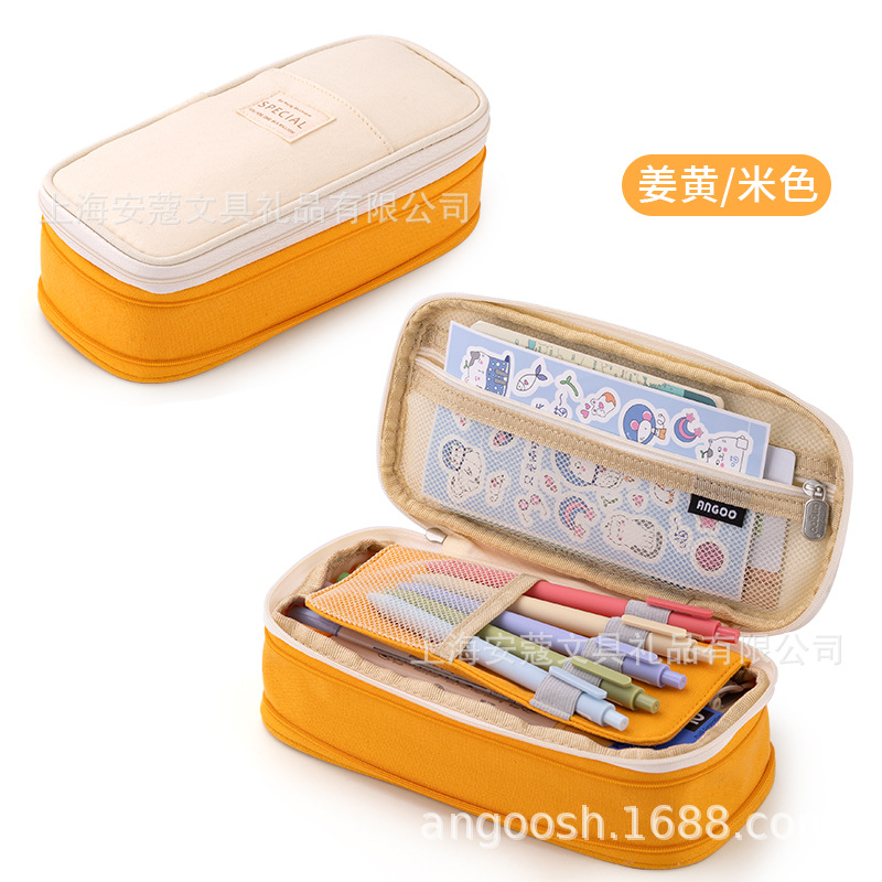 Anko ANGOO 컬러 매칭 연필 케이스는 남성과 여성을위한 대용량 문구 상자로 변형 될 수 있습니다. 창조적 인 펜 상자 더블 지퍼