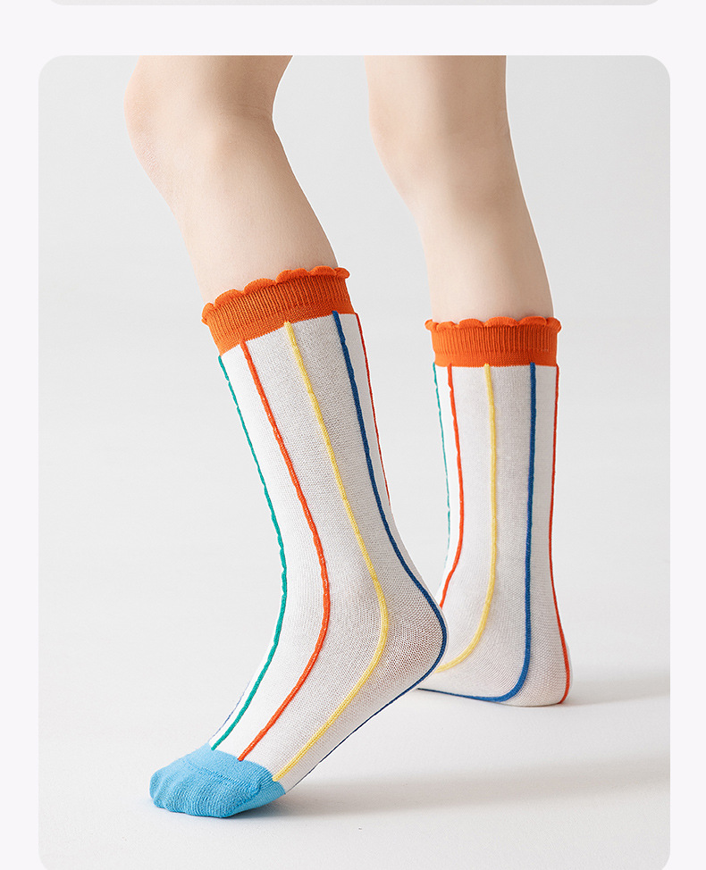 학생 스포츠 양말 여름 얇은 만화 양말 어린이 양말 남아용 무지개 양말 중간 길이 양말