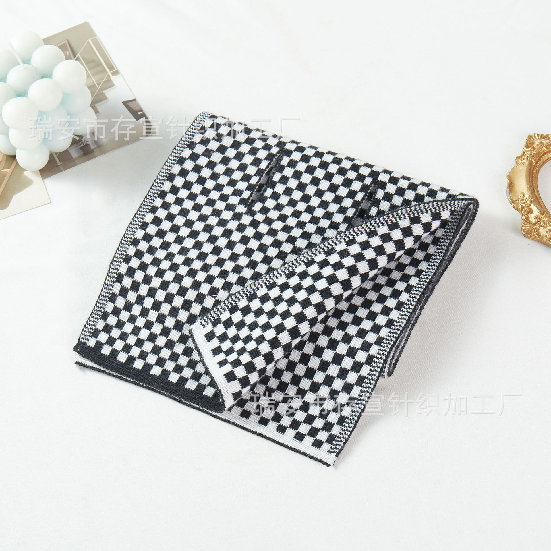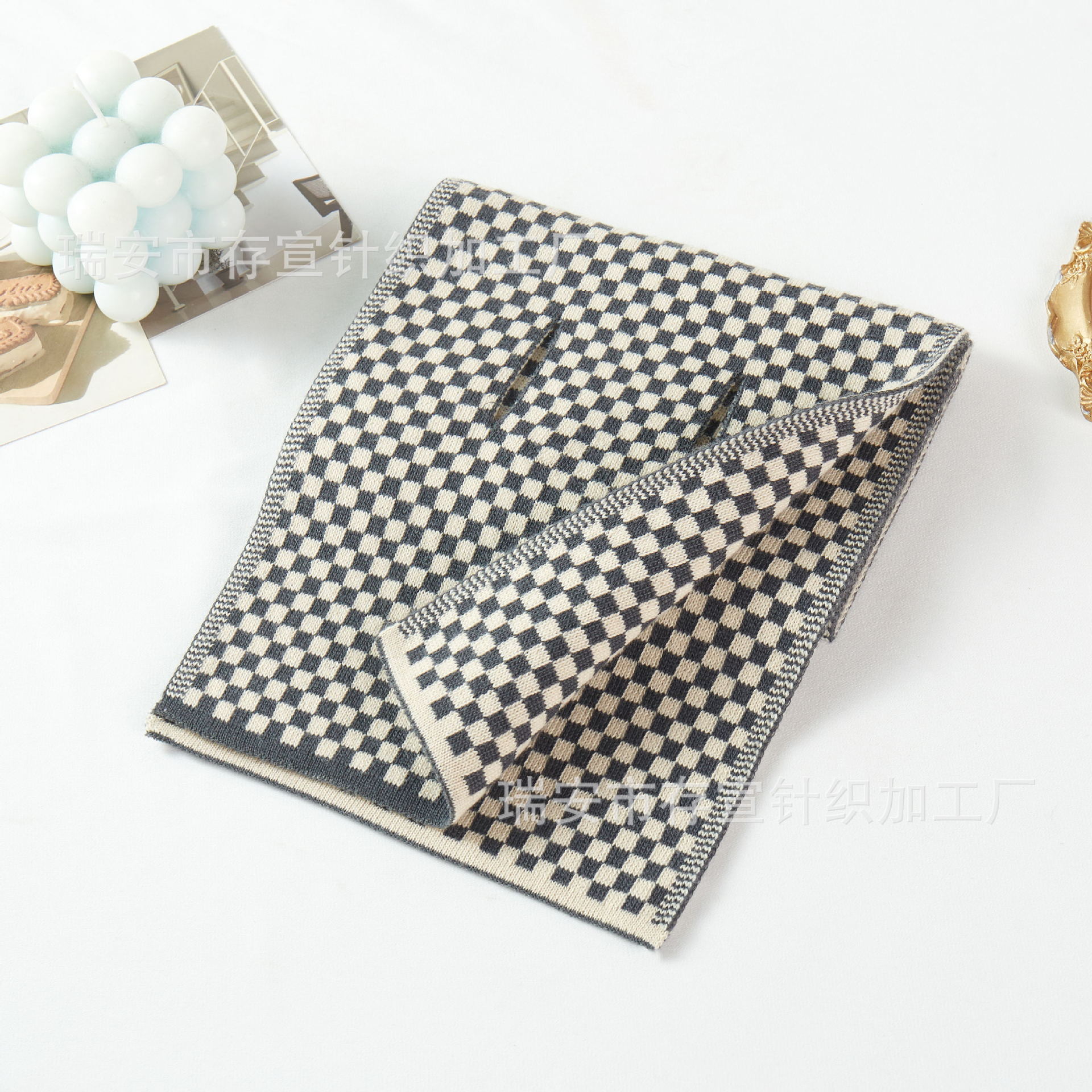 • 체크무늬 스카프: 검정색