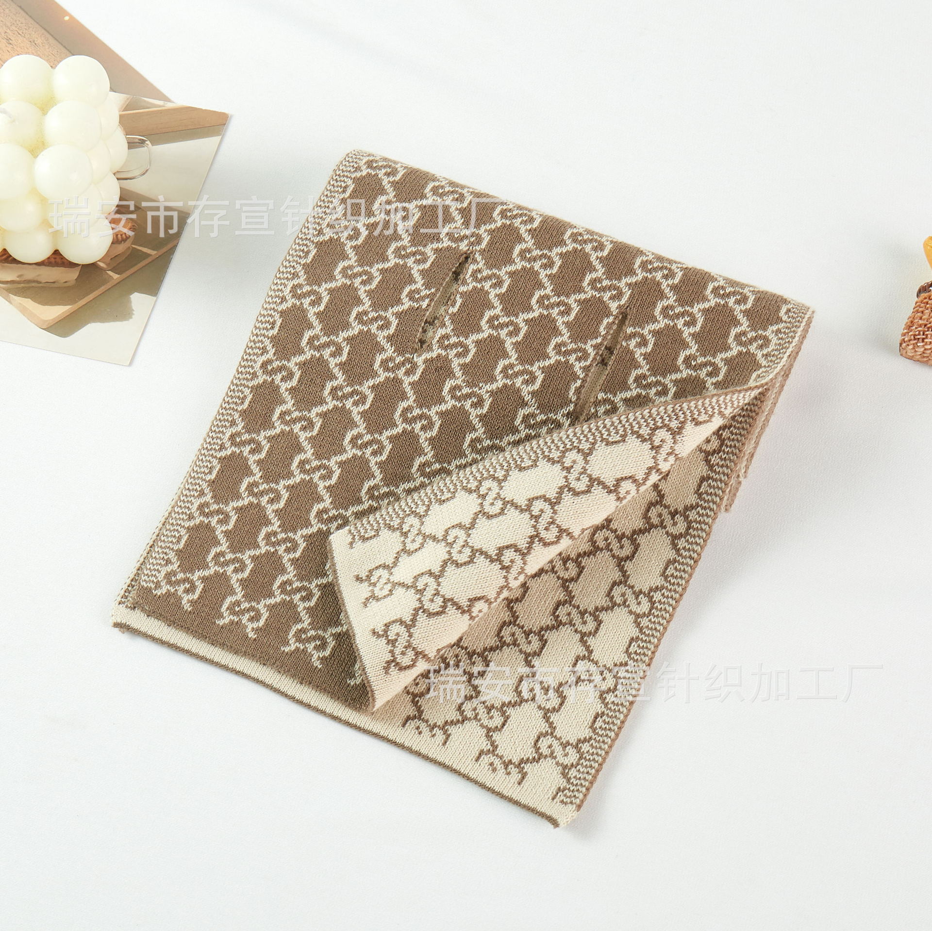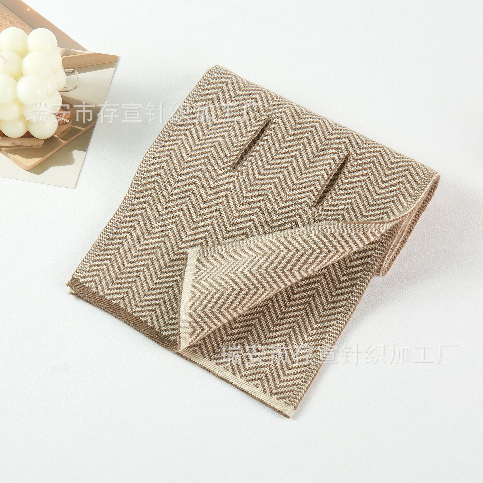 • 물결 모양의 스카프: 카키색