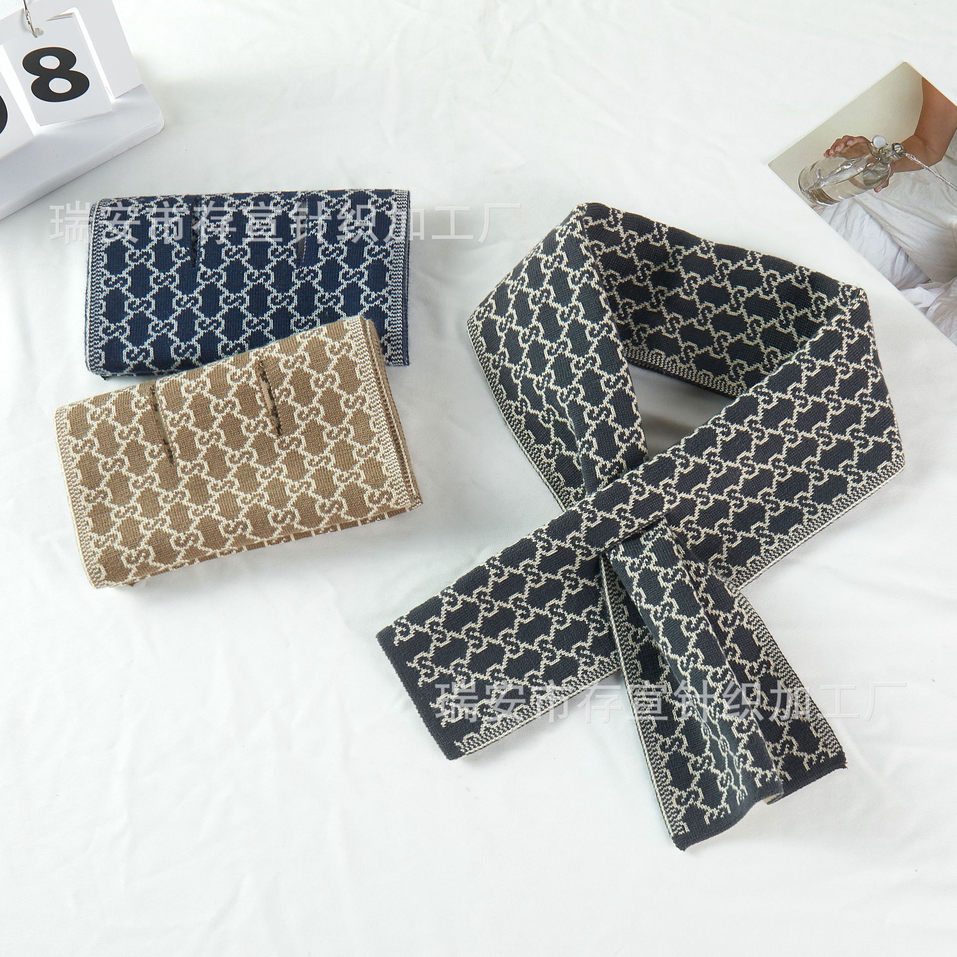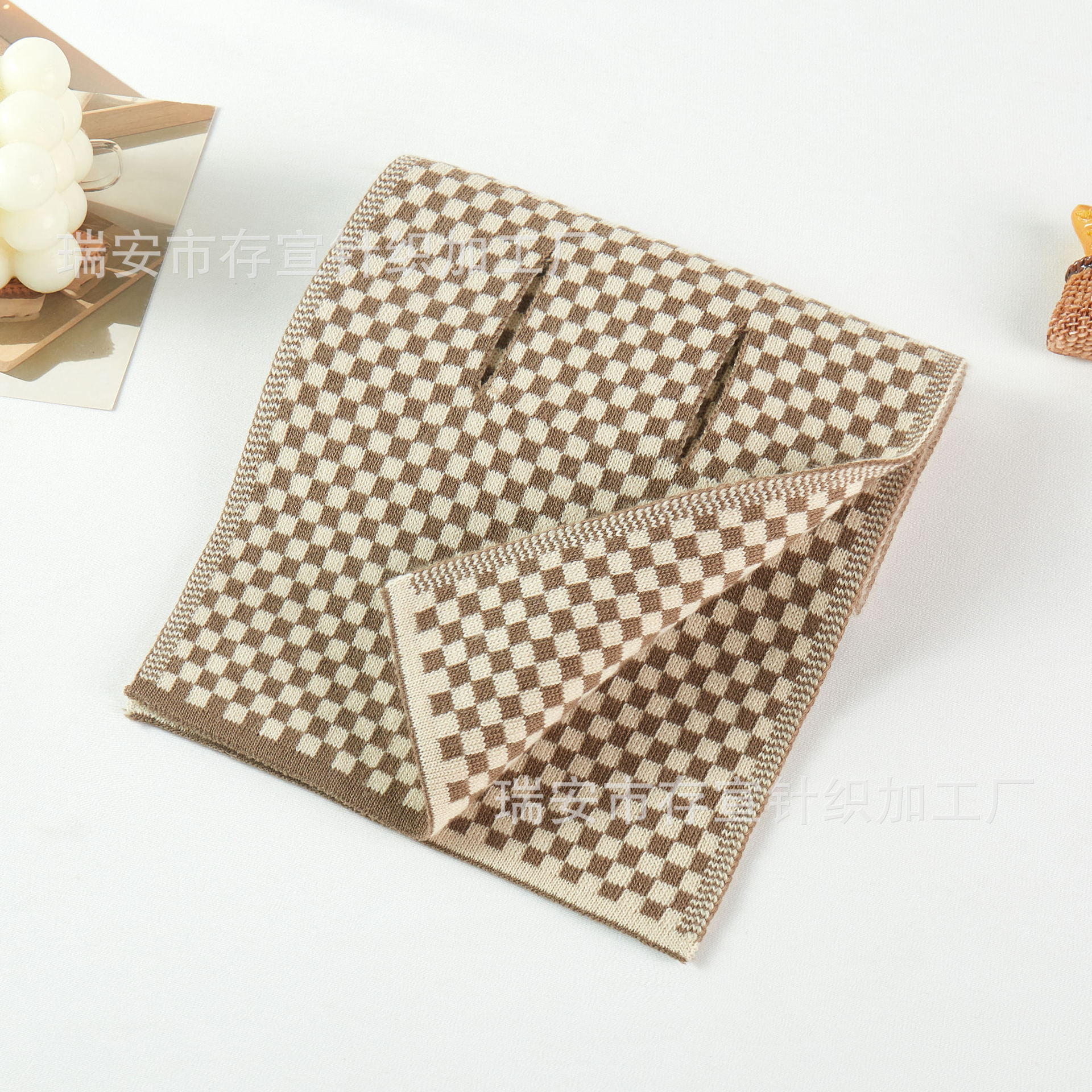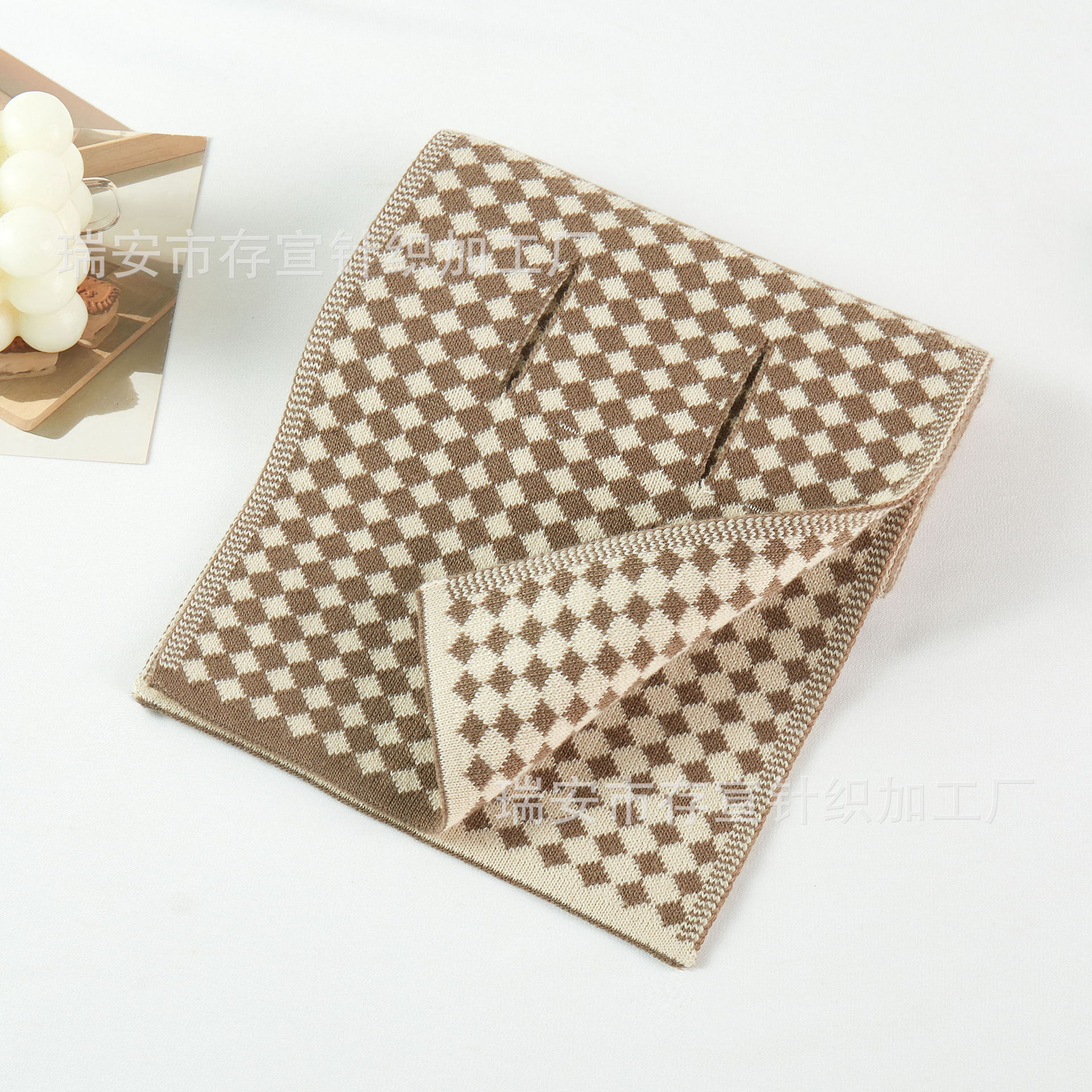 가을 겨울 목도리 단색 물떼새 격자무늬 스카프 따뜻한 니트 크로스 스카프 짧은 스타일 남성용 크로스보더 인기 상품스토어 가기