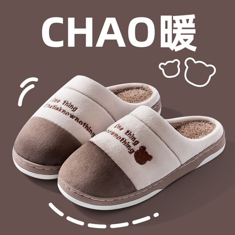 Cixi 면 슬리퍼 봄과 가을 남자 겨울 홈 실내 미끄럼 방지 홈 따뜻한 커플 겨울 모피 봉제 여성