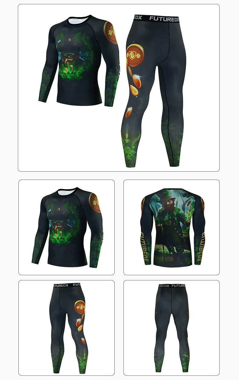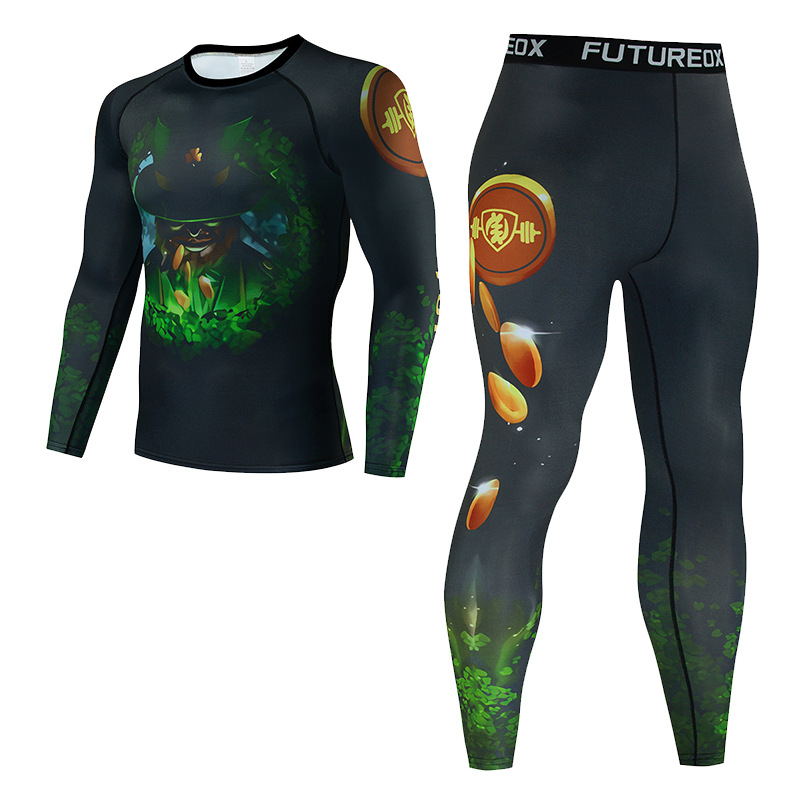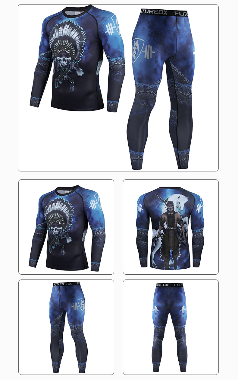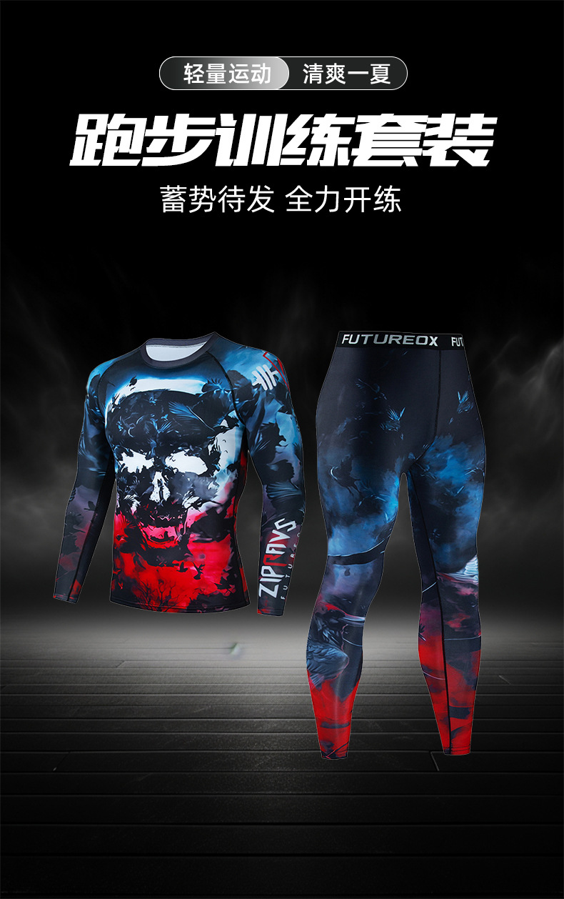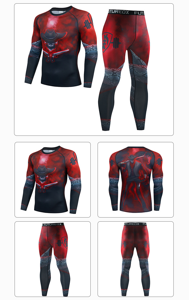 국경 간 긴팔 바지 스타킹 남자 스포츠 투피스 세트 빠른 건조 피트니스 옷 달리기 훈련 압축 옷스토어 가기
