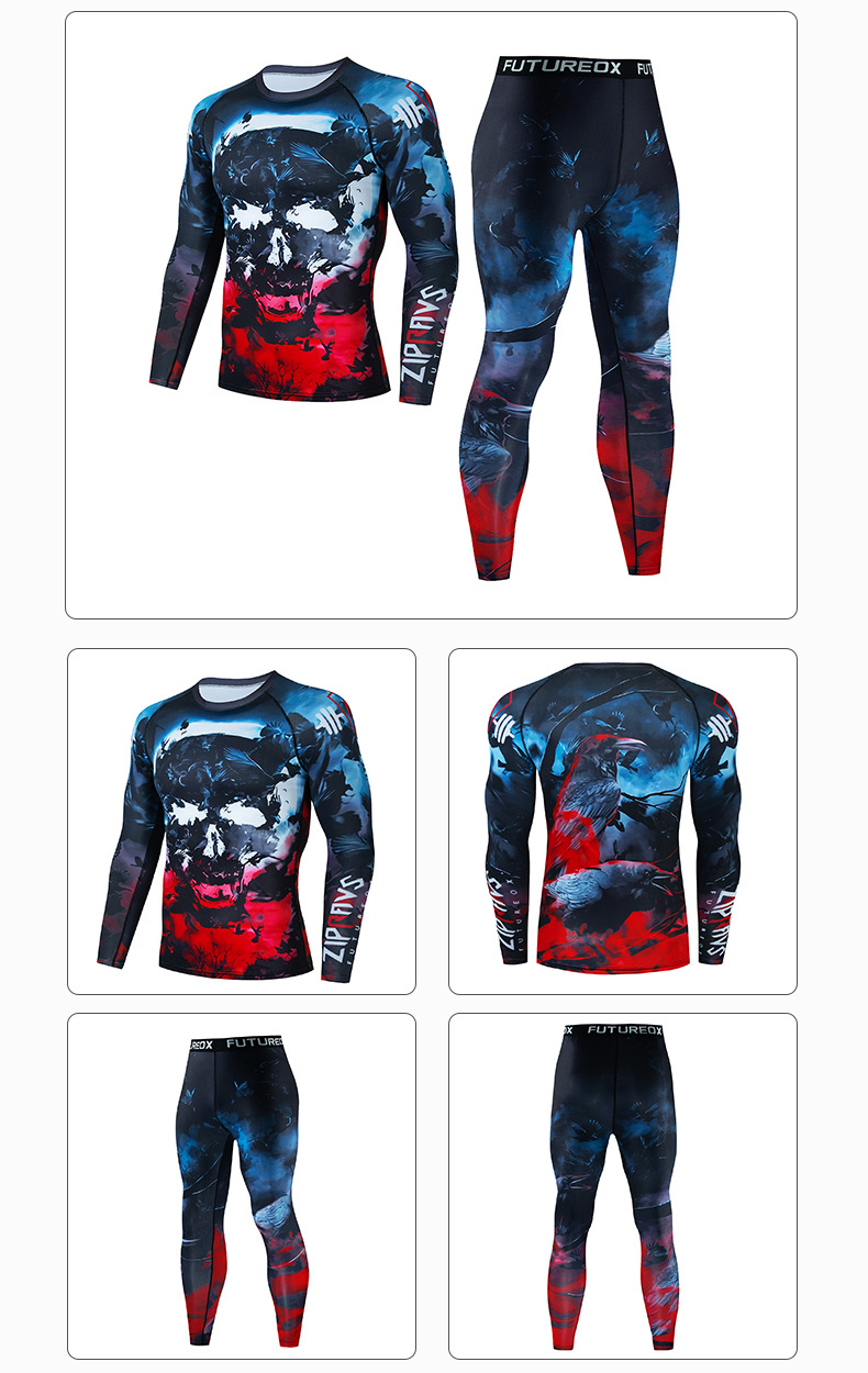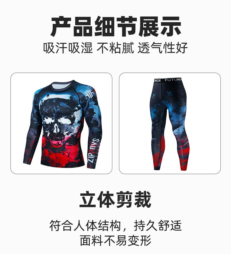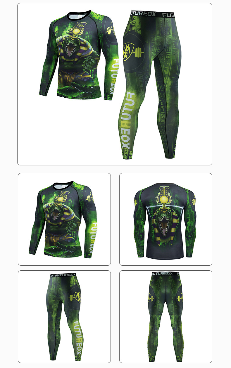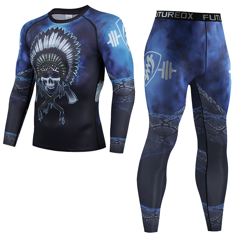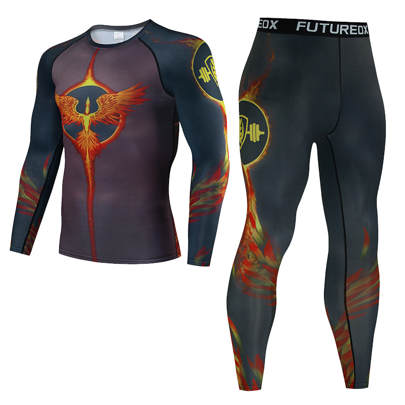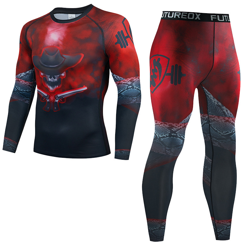 국경 간 긴팔 바지 스타킹 남자 스포츠 투피스 세트 빠른 건조 피트니스 옷 달리기 훈련 압축 옷스토어 가기