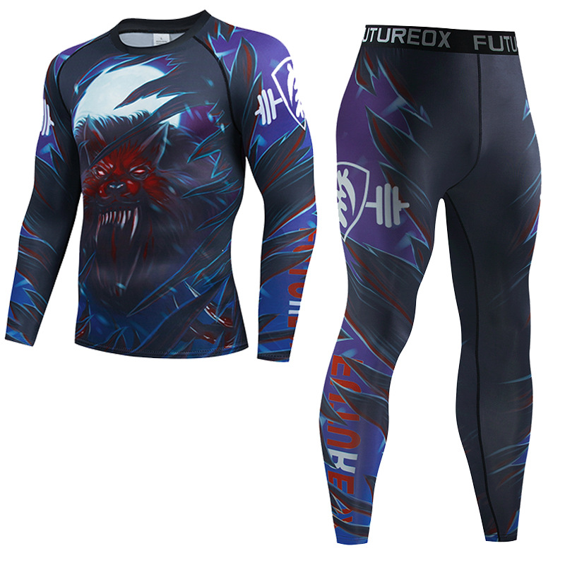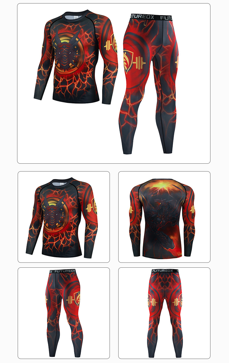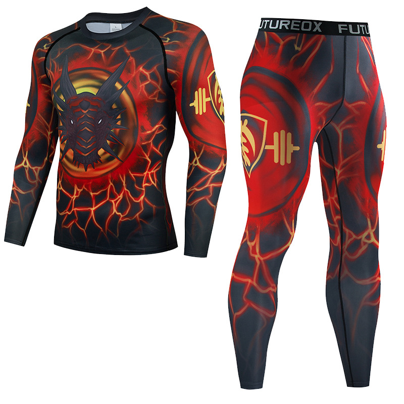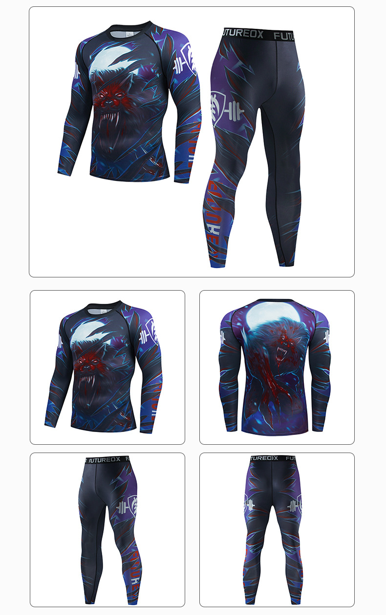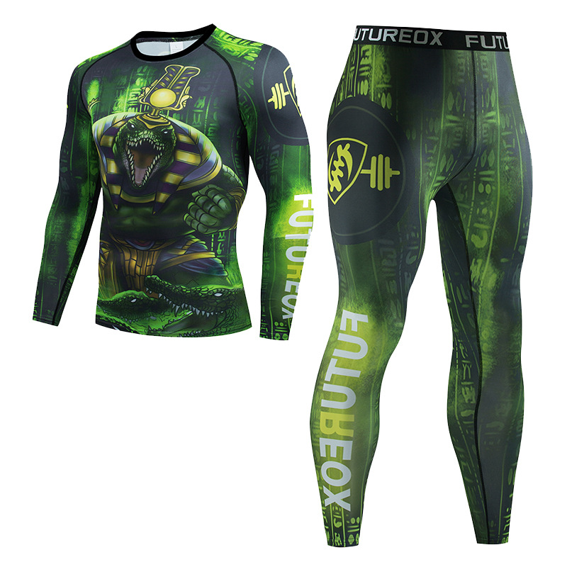 국경 간 긴팔 바지 스타킹 남자 스포츠 투피스 세트 빠른 건조 피트니스 옷 달리기 훈련 압축 옷스토어 가기