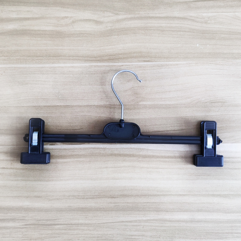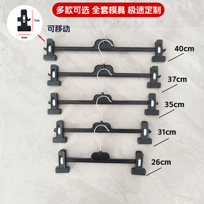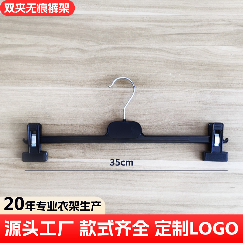 공장 직접 공급 더블 클립 팬츠 랙 35cm 이동식 텔레스코픽 팬츠 랙 블랙 플라스틱 스커트 클립 14 인치 36cm 국경스토어 가기