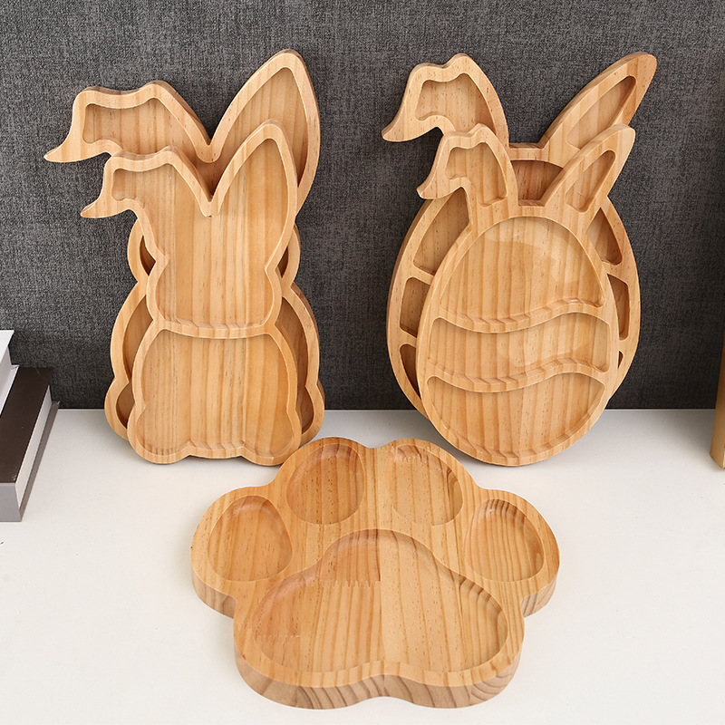 나무 만화 고양이의 발톱 트레이 가정용 단단한 나무 어린이 아침 식사 접시 파티 간식 접시스토어 가기