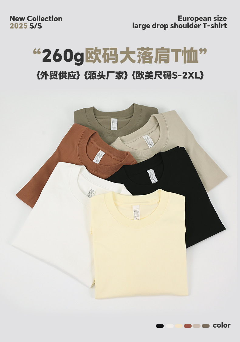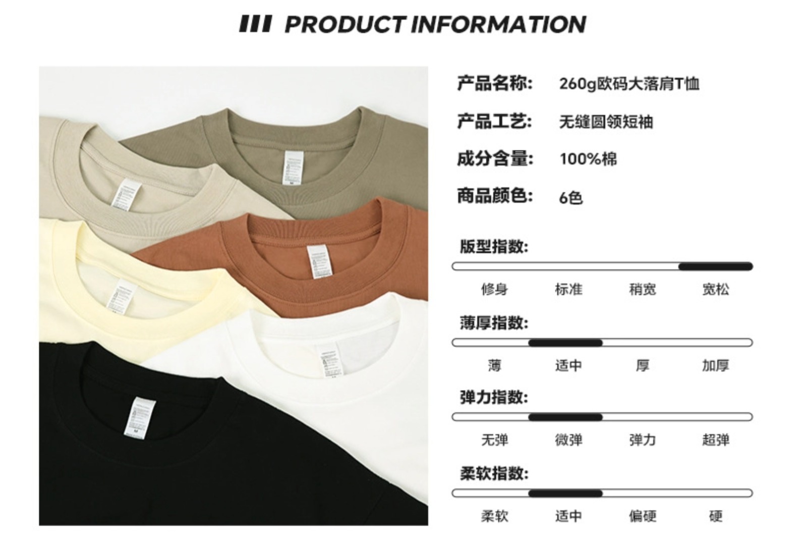 260g 유럽 사이즈 대형 오프 숄더 헤비 코튼 반팔 티셔츠 남성용 크로스 보더 남성용 반팔 트렌디 브랜드 루즈 청소년 티셔츠스토어 가기