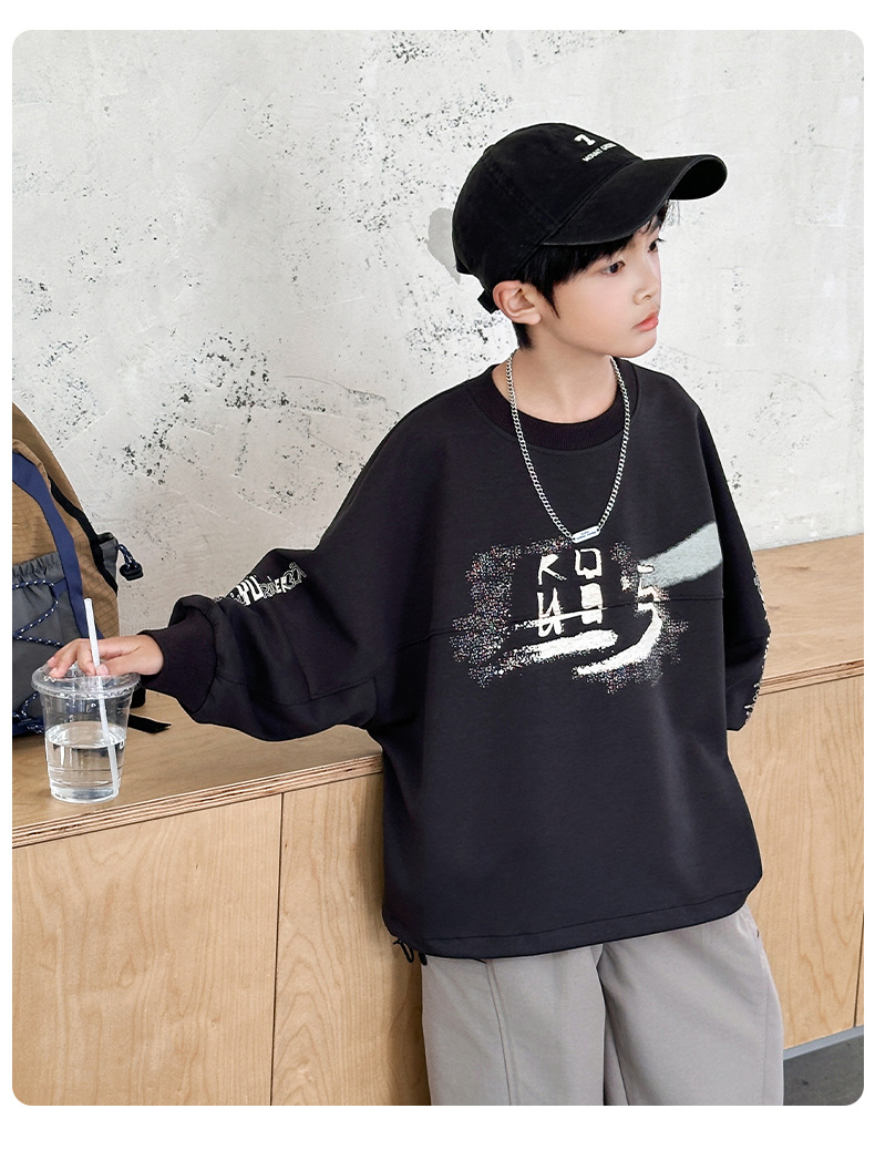 어린이 착용 소년의 땀 봄과 가을 2024 새로운 가을 탑 둥근 목 소년 옷 가을 1615