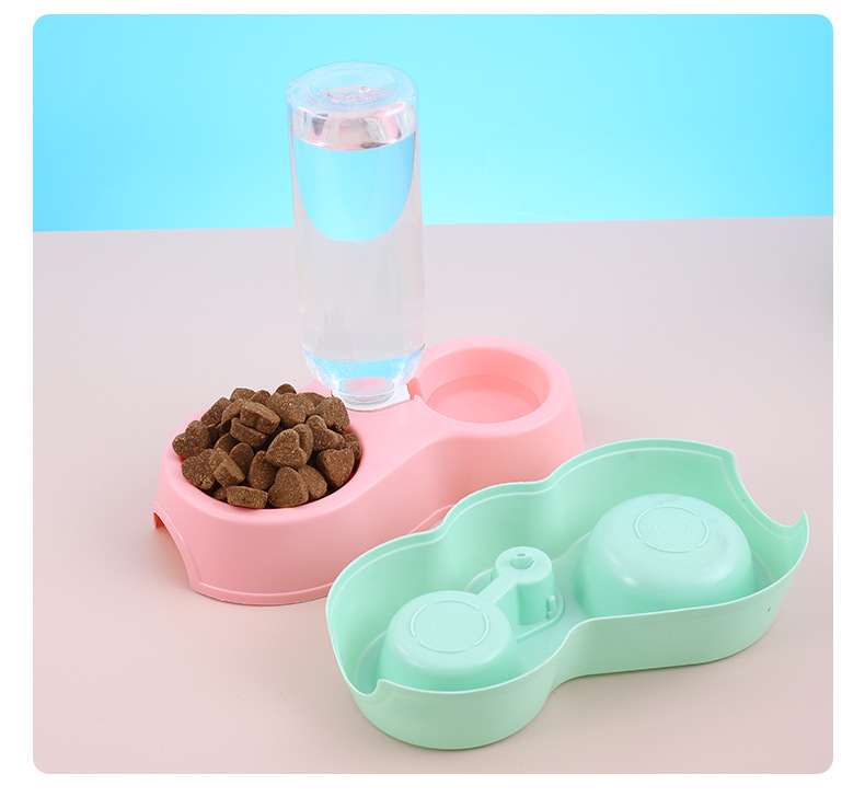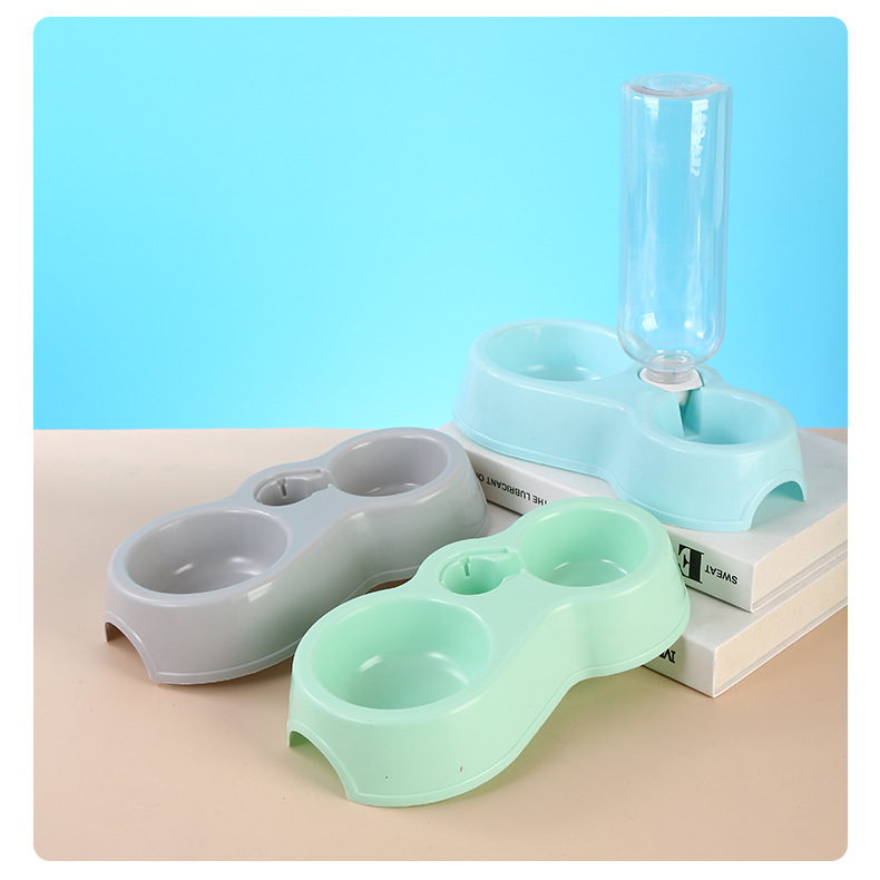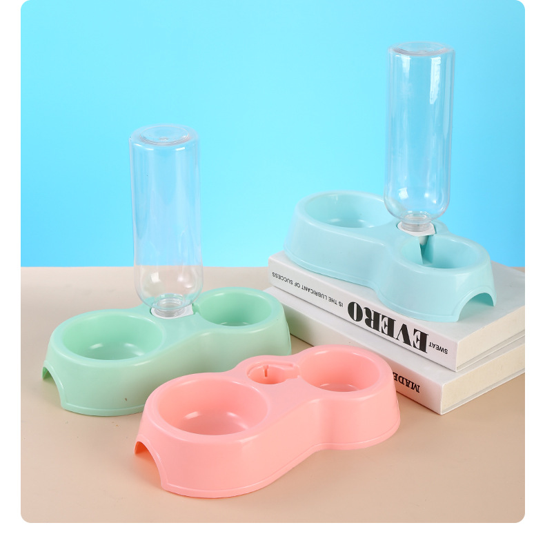 제조업체 직접 공급 애완 동물 더블 그릇 플라스틱 개 그릇 마카롱 고양이 음식 그릇 자동 물 분수 애완 동물 주전자 세트