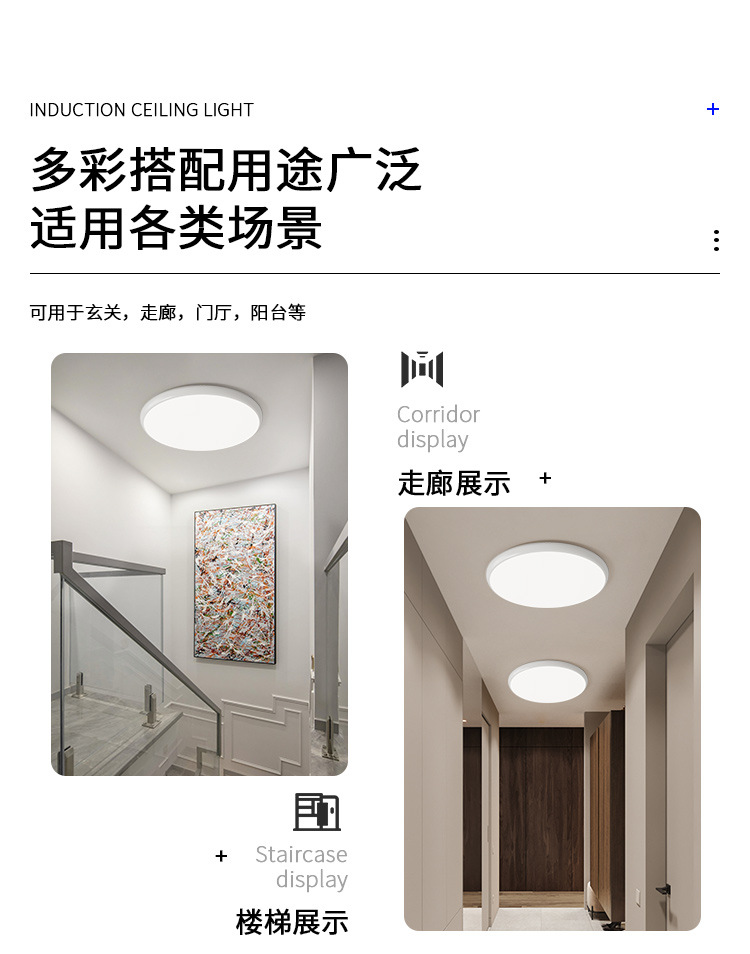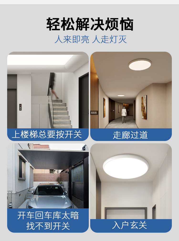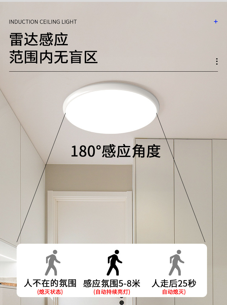 LED 마이크로파 레이더 유도 3 방증 천장 램프 안티 블루 라이트 계단 복도 인체 적외선 음향 제어 램프스토어 가기