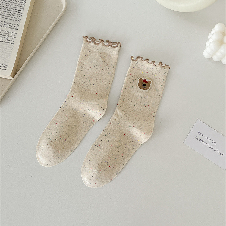 나무 귀 만화 양말 어린이 중간 튜브 스택 양말 포인트 원사 귀여운 자수 동물 봄 가을과 겨울 학생 스타킹스토어 가기