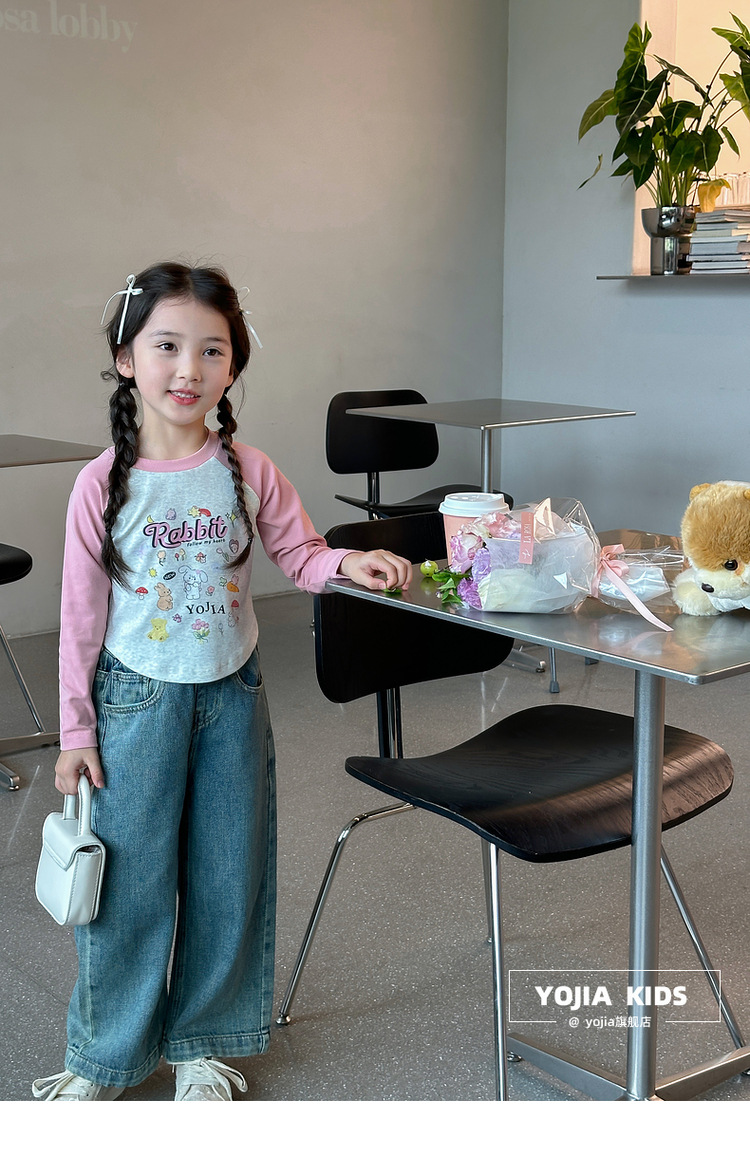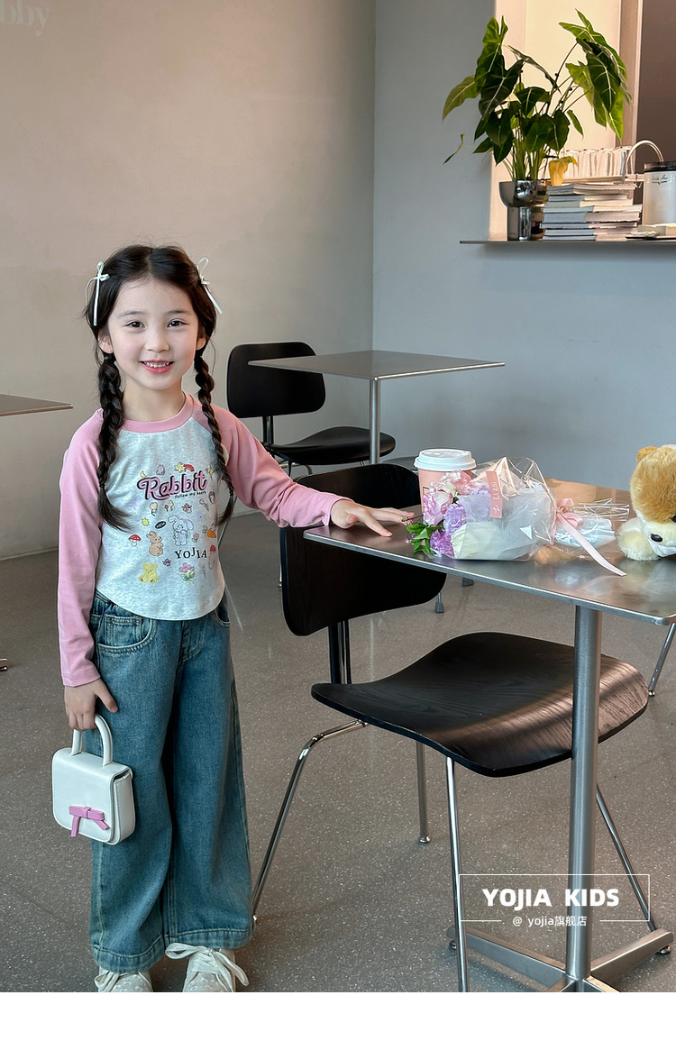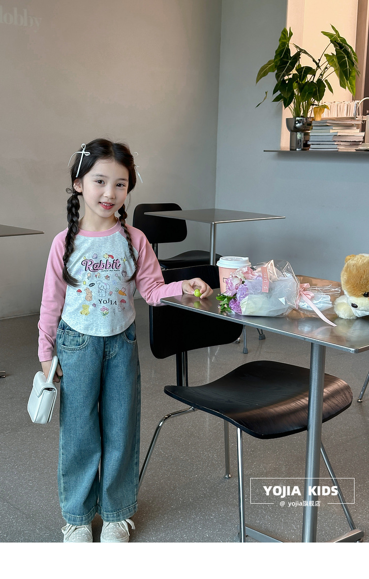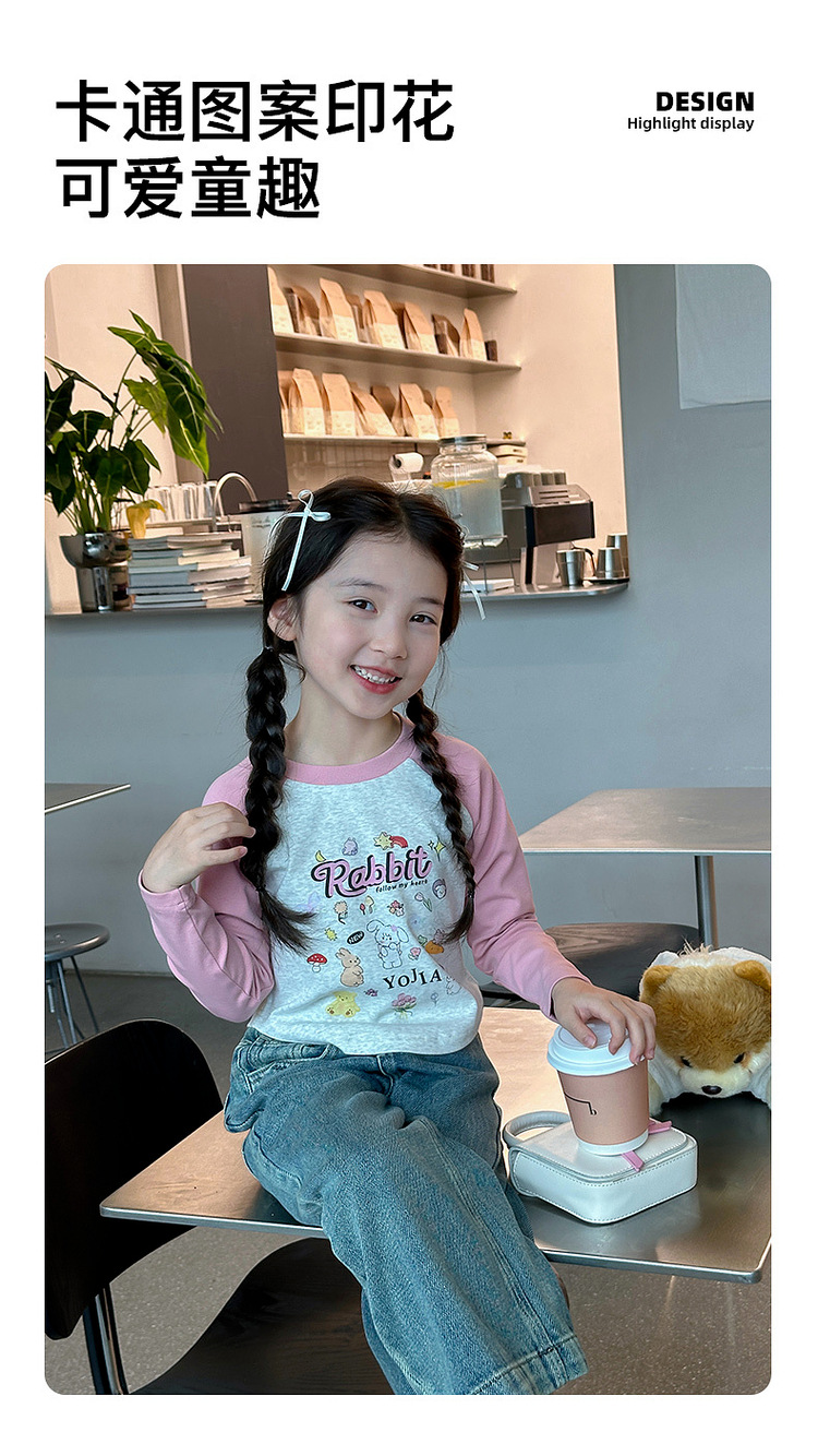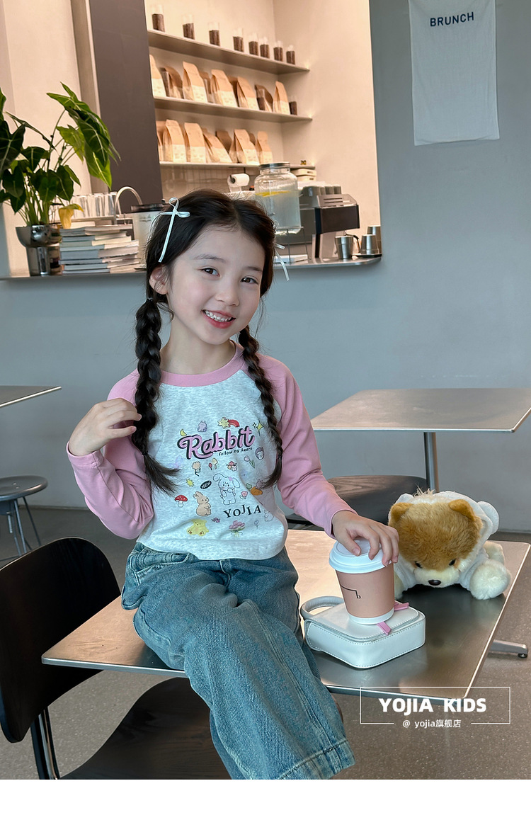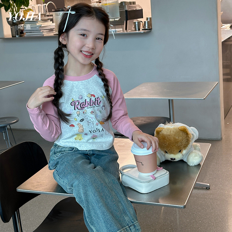 YOJIA Girls 긴팔 티셔츠 봄과 가을 2024 새로운 한국식 내부 아동복 최고의 아동베이스 셔츠 가을 착용스토어 가기