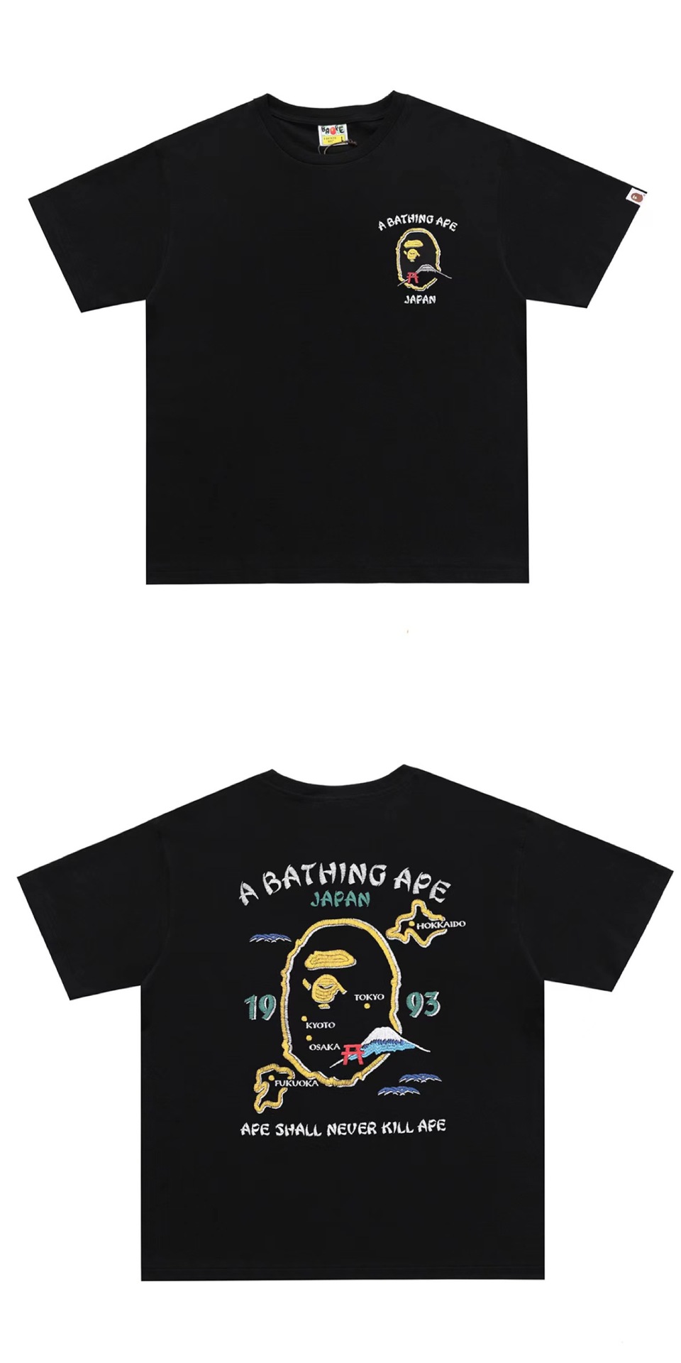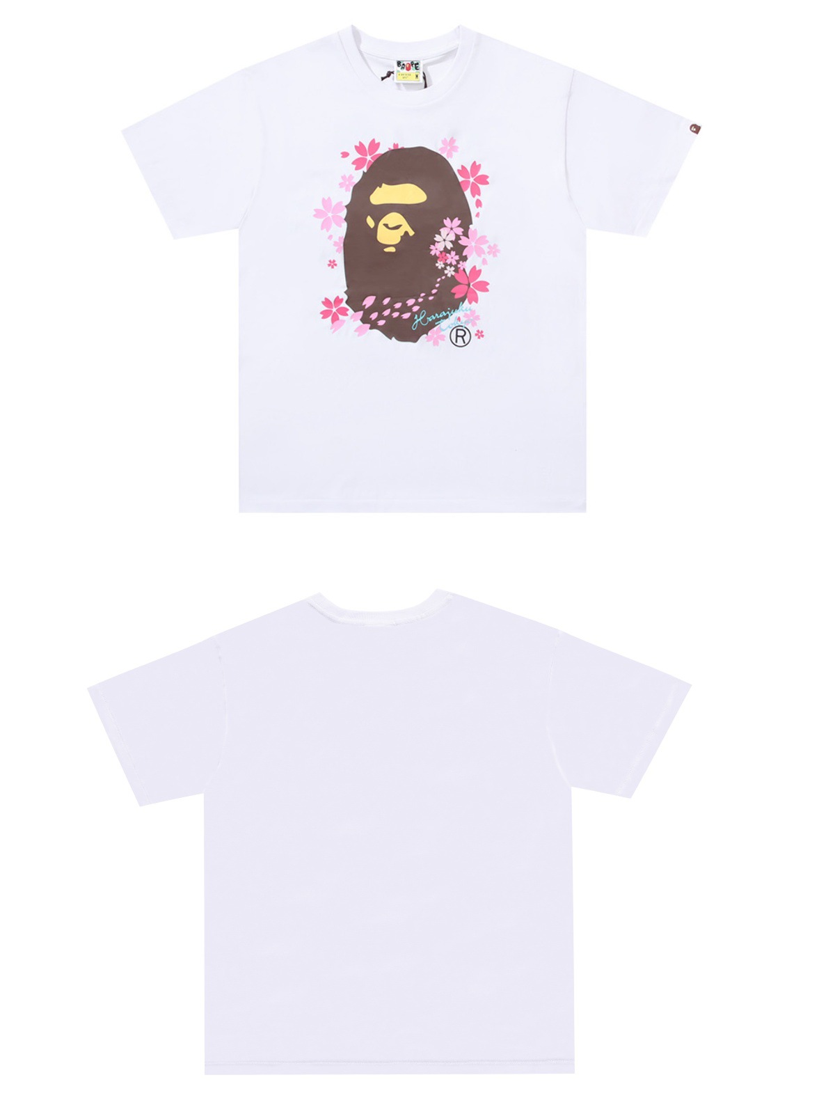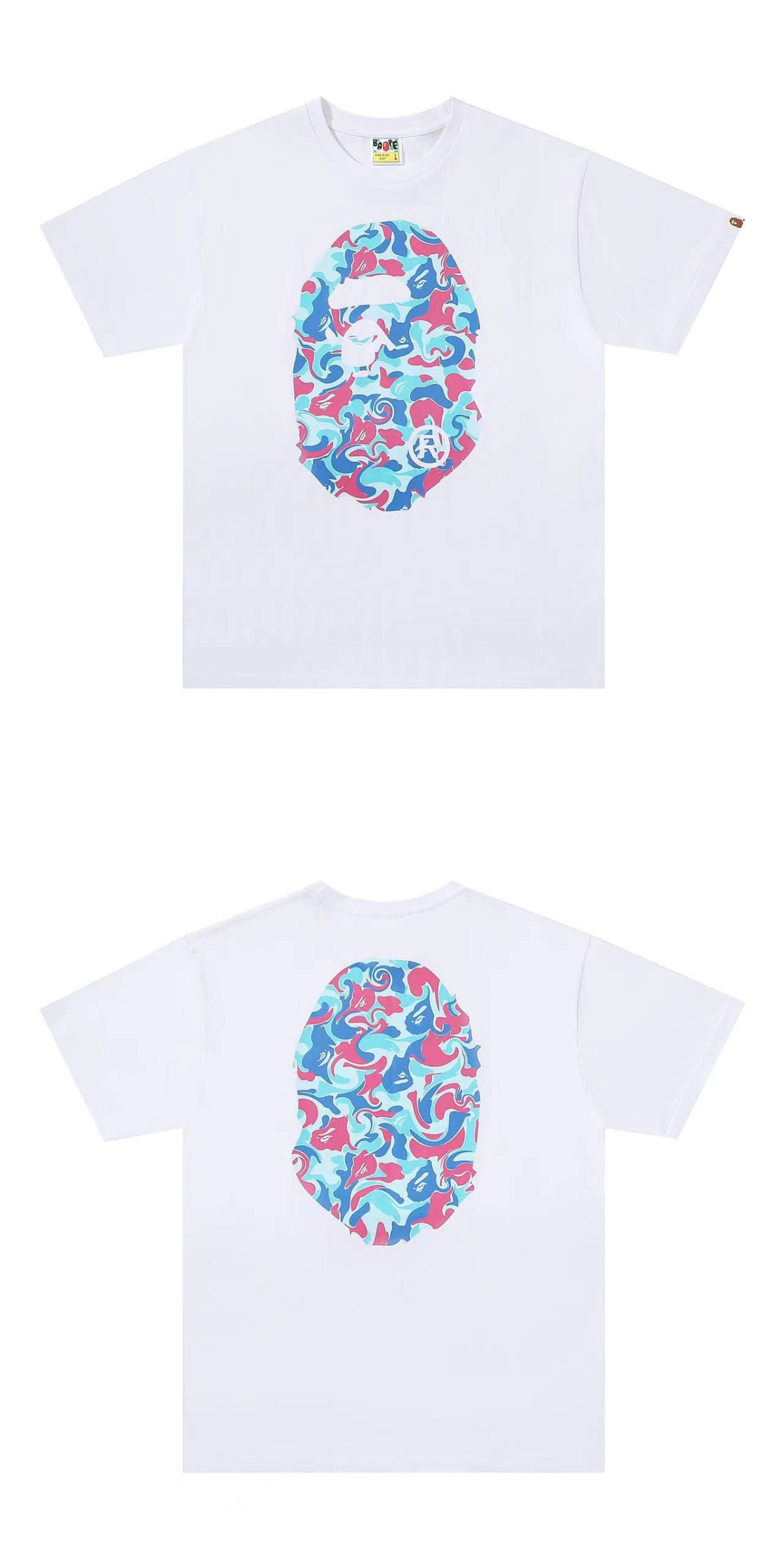 트렌디 브랜드 클래식 카모플라주 벚꽃 후지산 프린트 남녀 공용 캐주얼 루즈핏 반팔 티셔츠스토어 가기