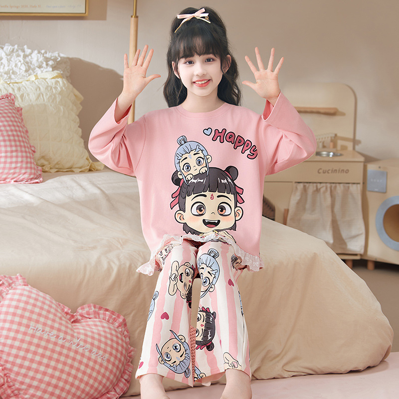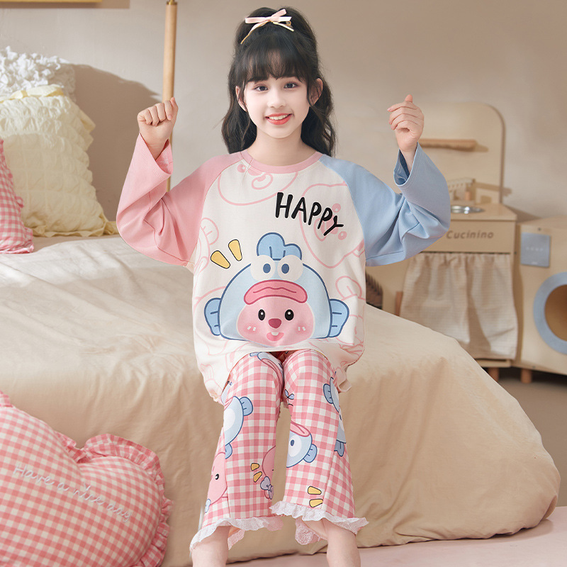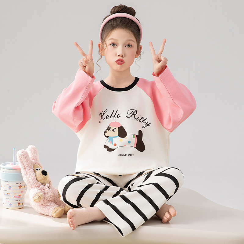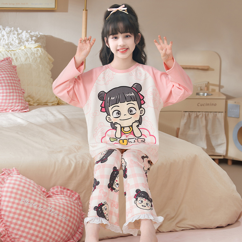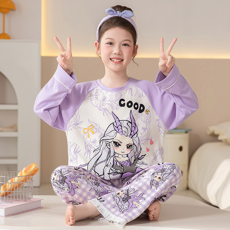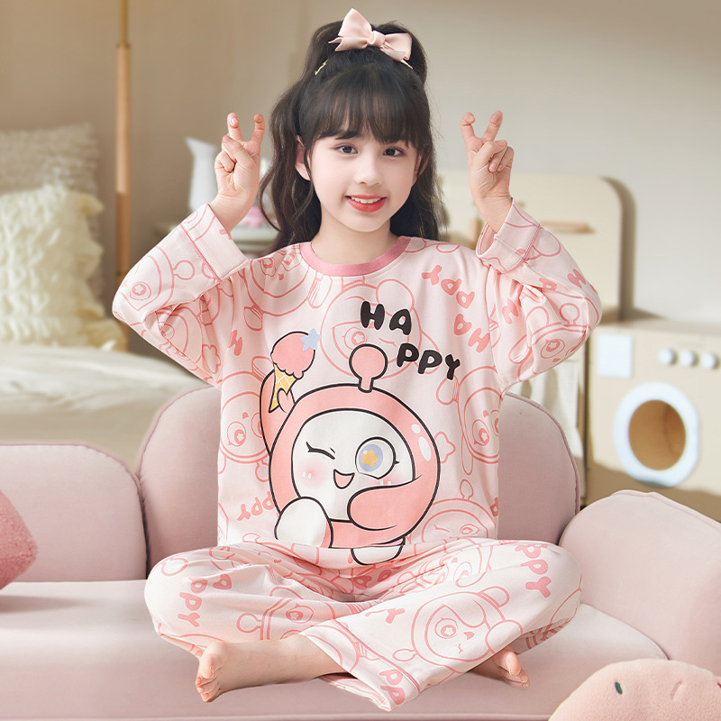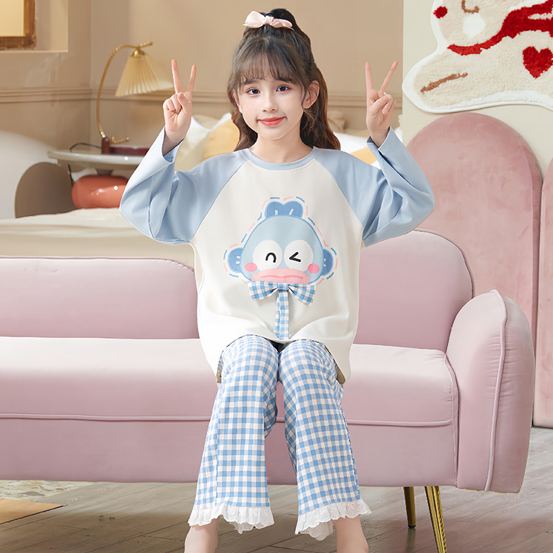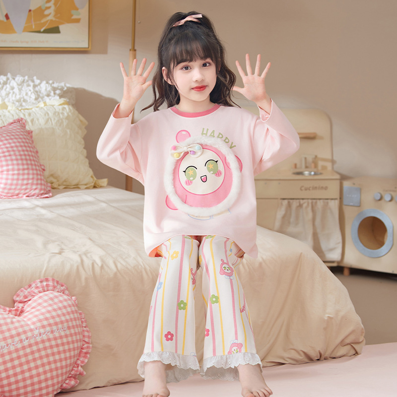멜로디 어린이 잠옷 소녀 가을 라운드 넥 긴팔 순수 코튼 정장 큰 어린이 공주 소녀 홈웨어 10