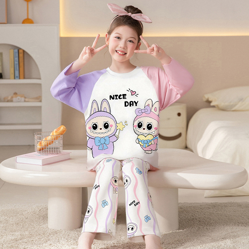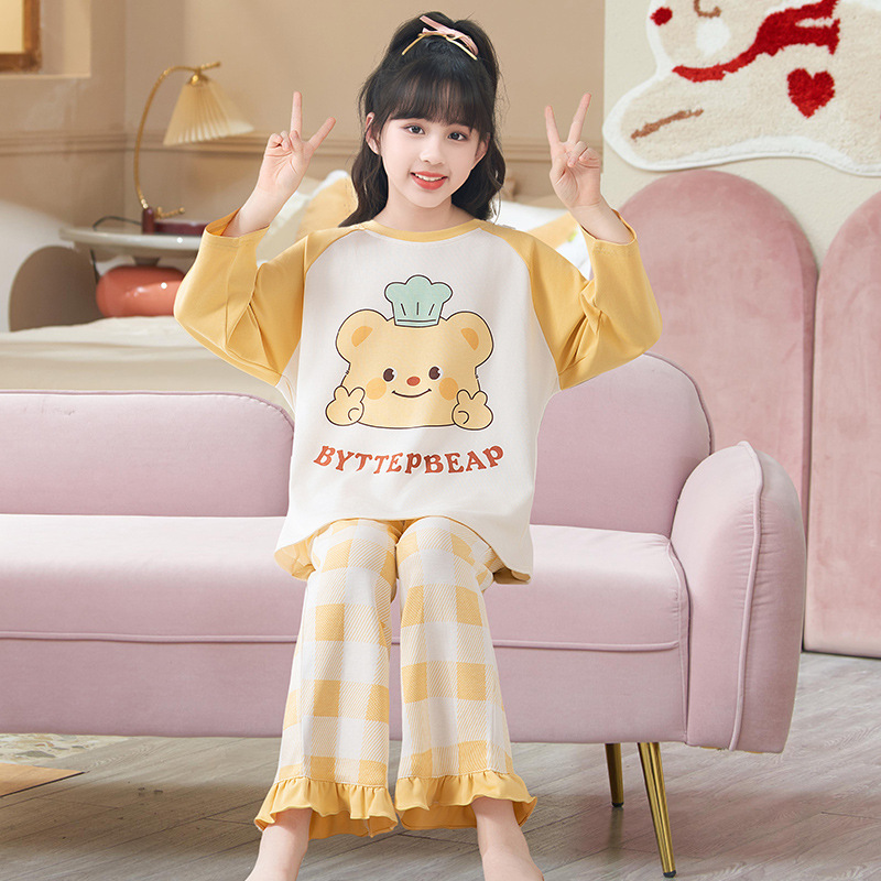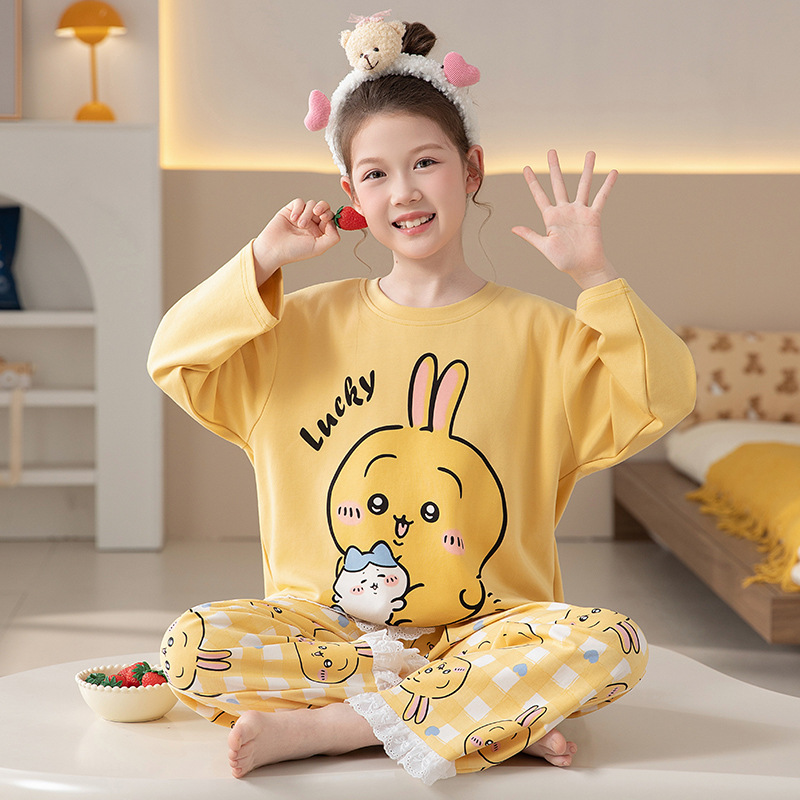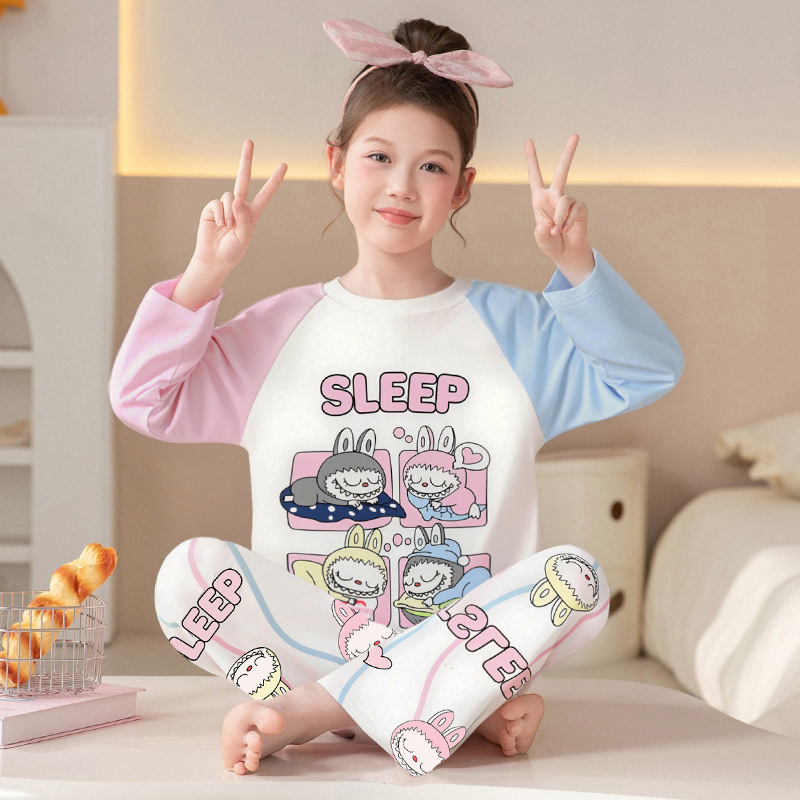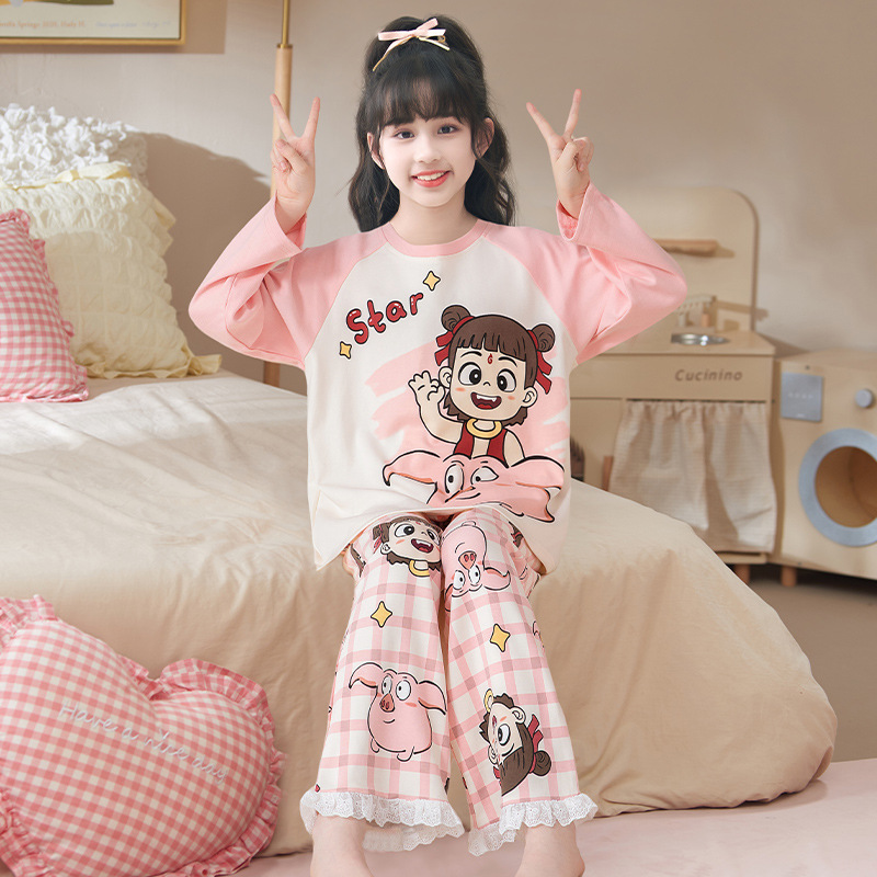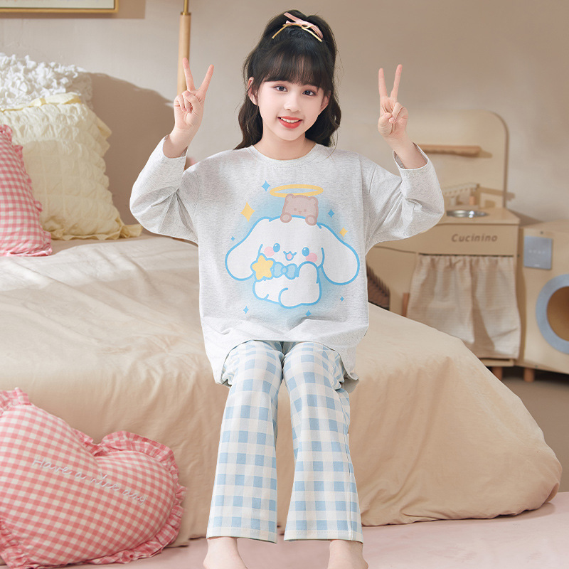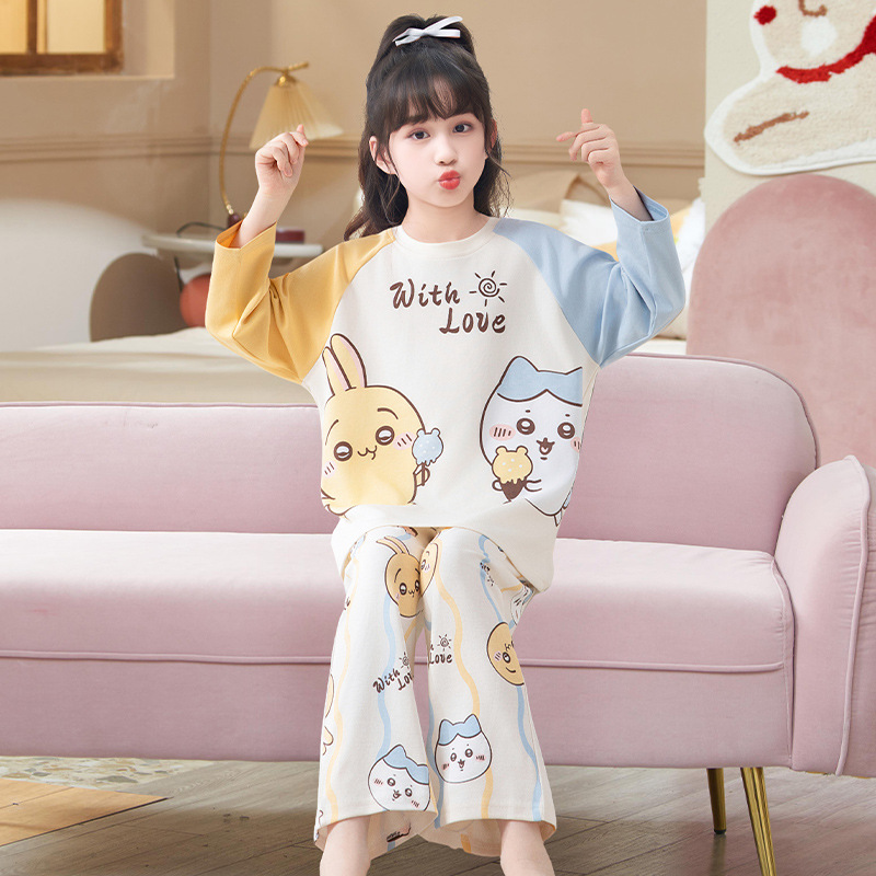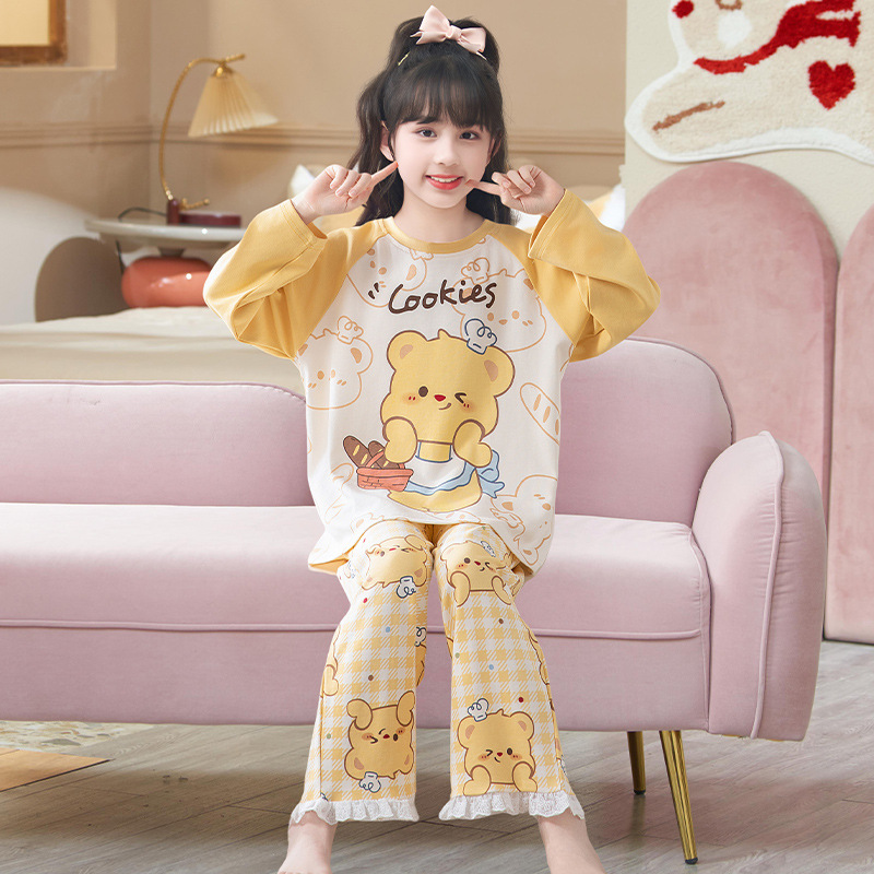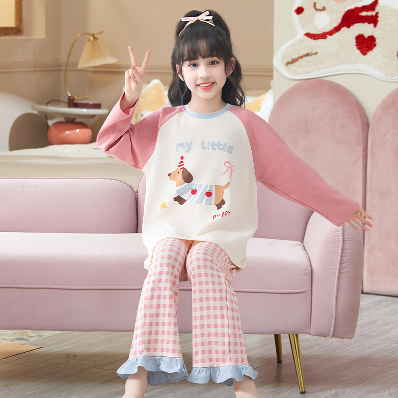 멜로디 어린이 잠옷 소녀 가을 라운드 넥 긴팔 순수 코튼 정장 큰 어린이 공주 소녀 홈웨어 10