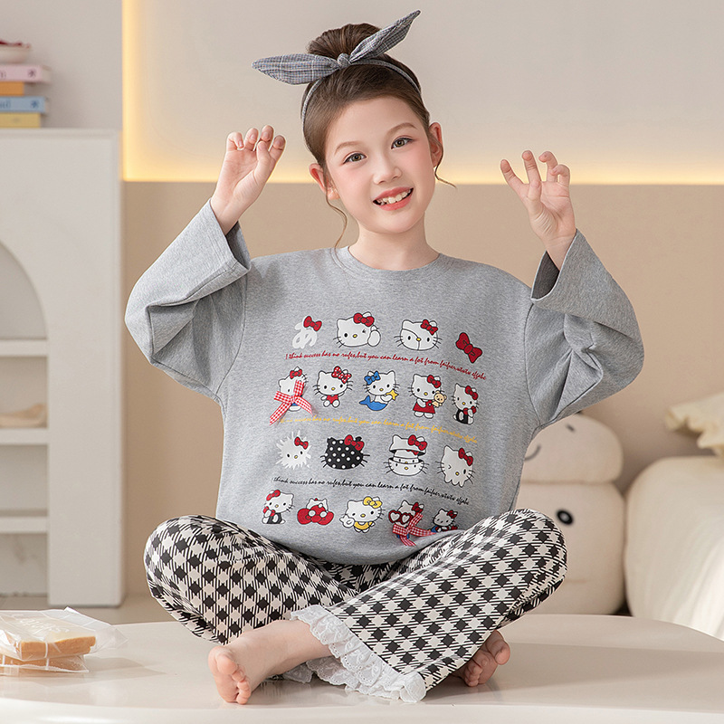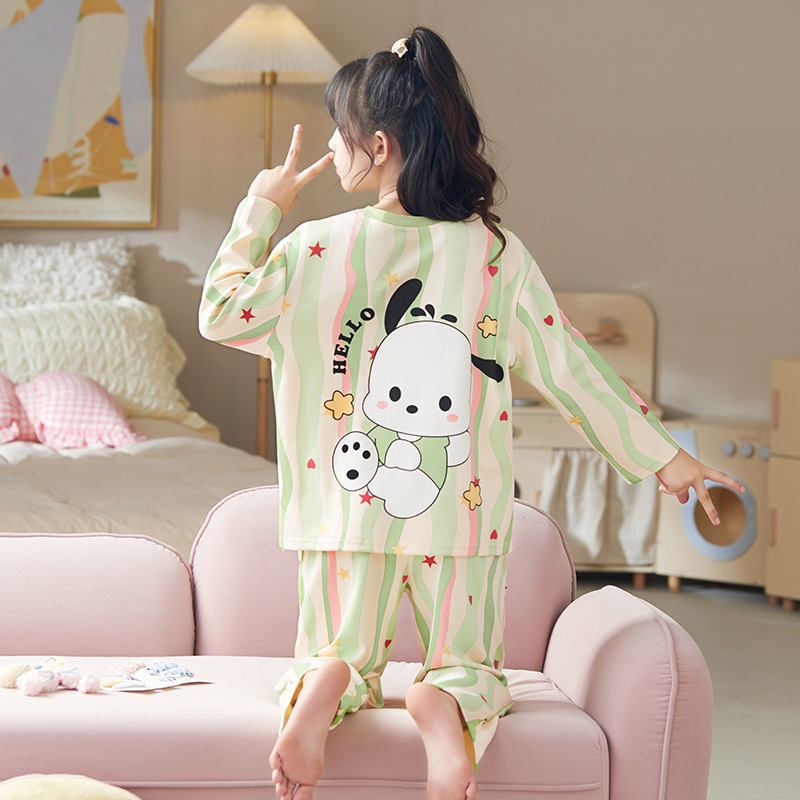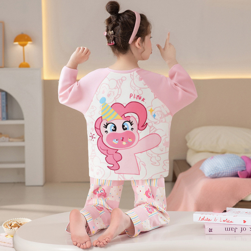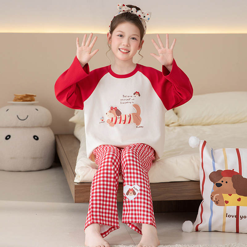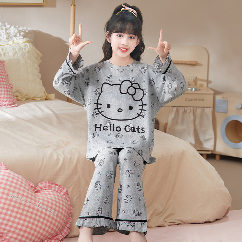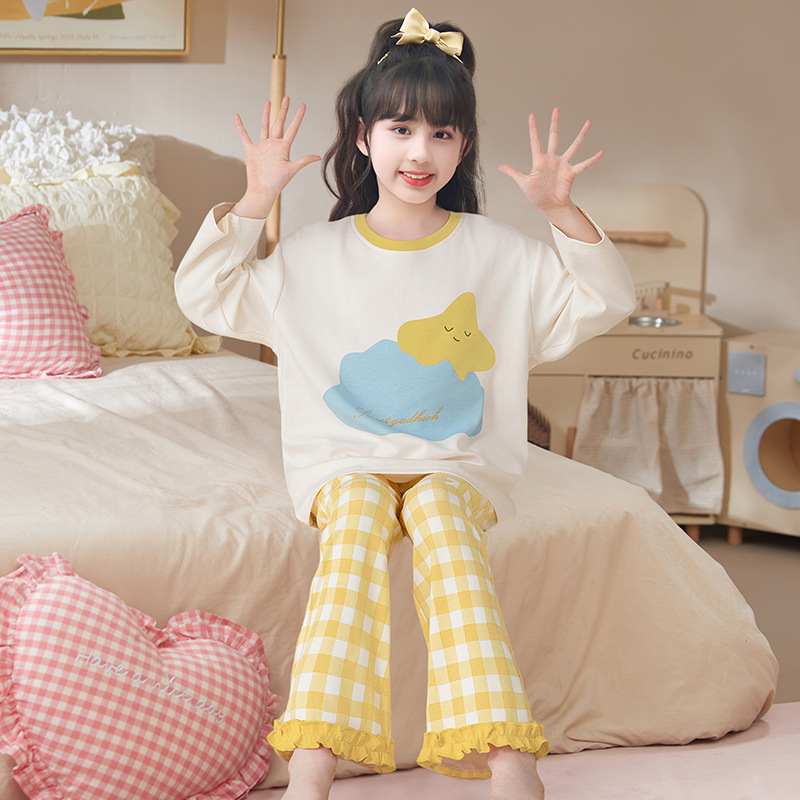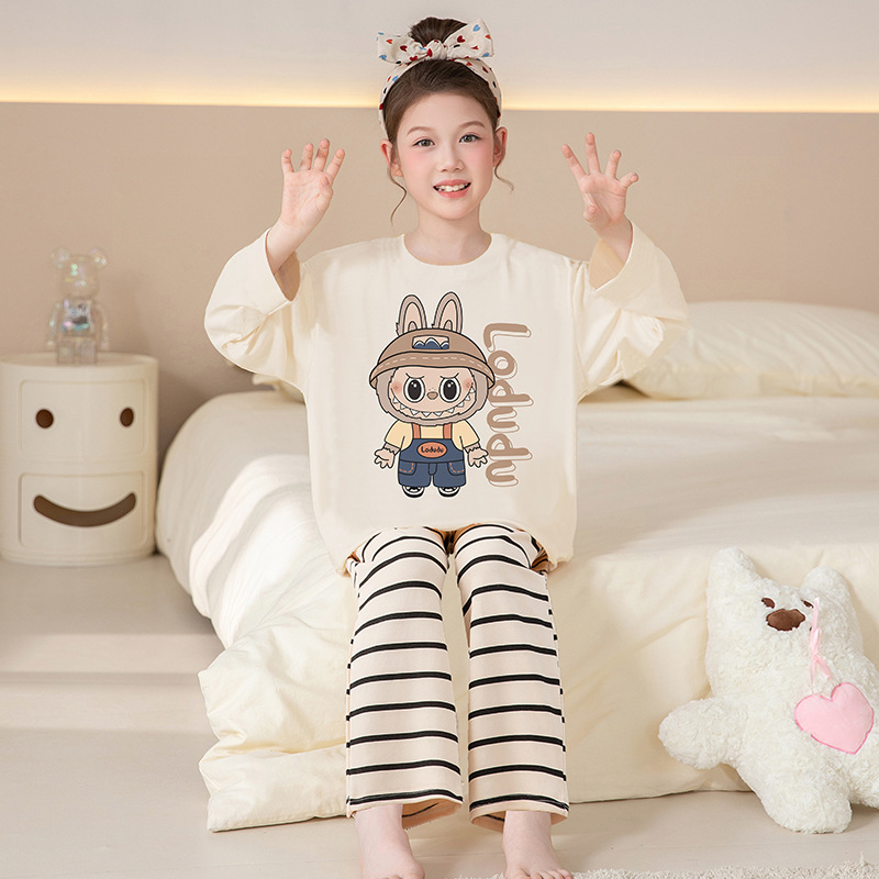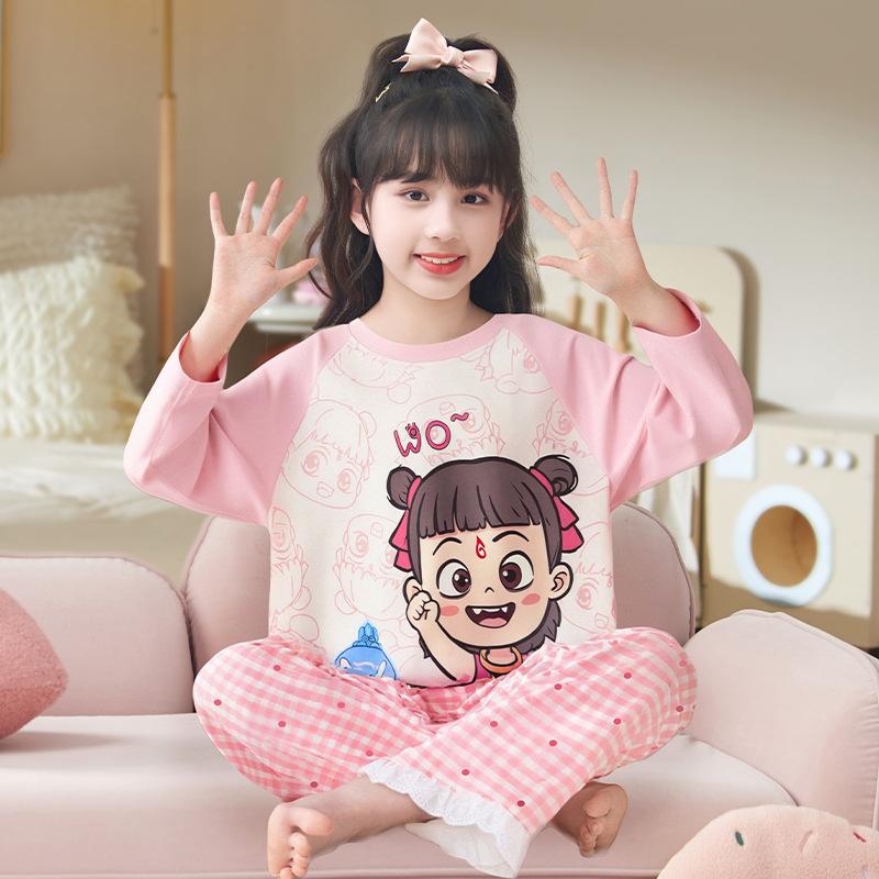 멜로디 어린이 잠옷 소녀 가을 라운드 넥 긴팔 순수 코튼 정장 큰 어린이 공주 소녀 홈웨어 10