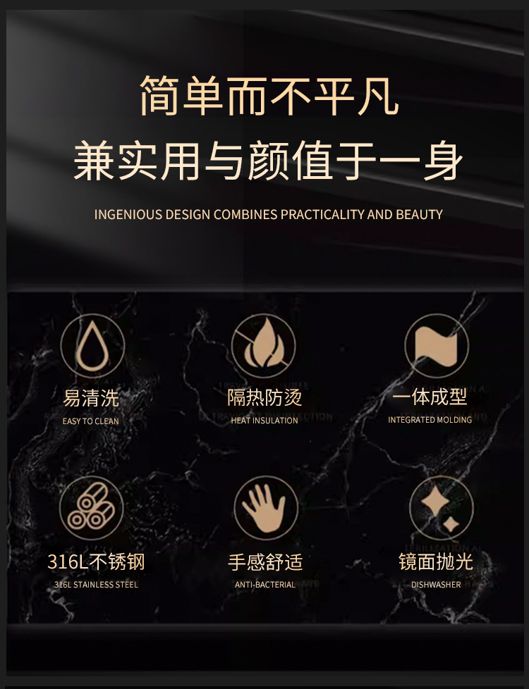 • 316 강철 거울 + 흑단