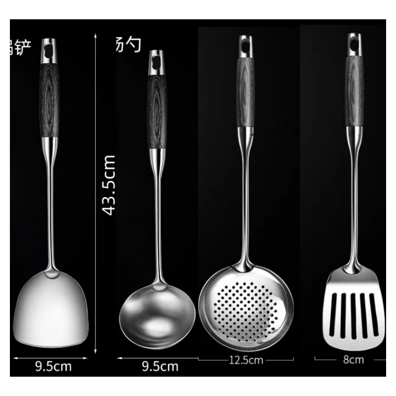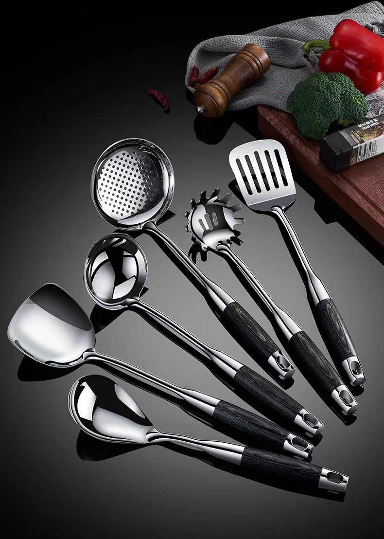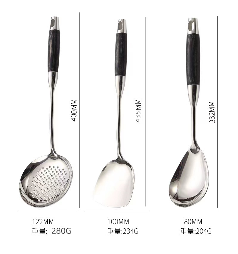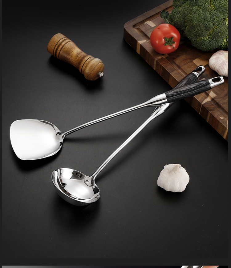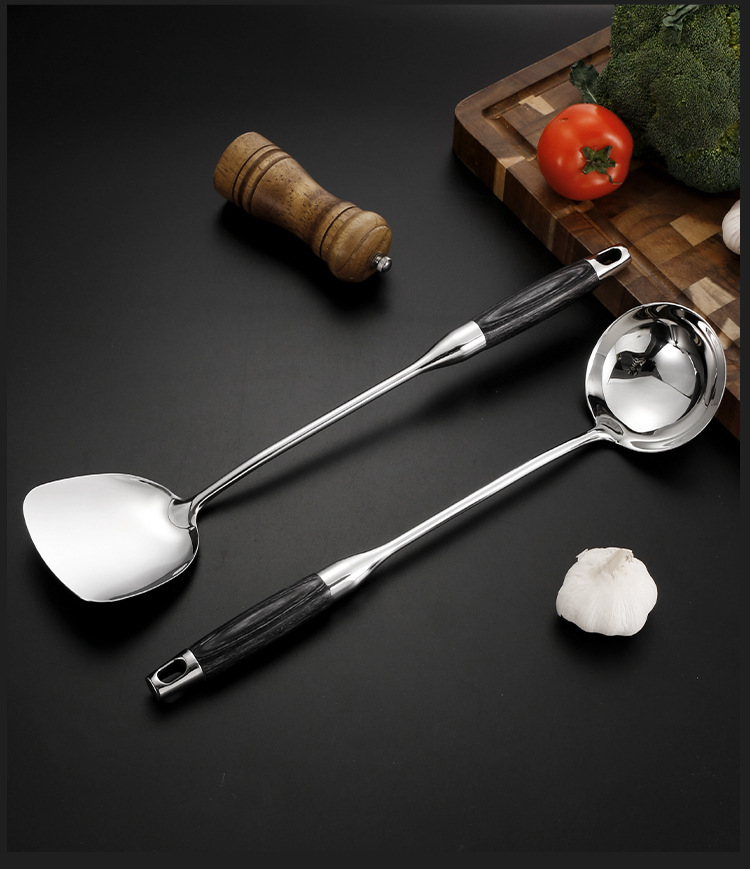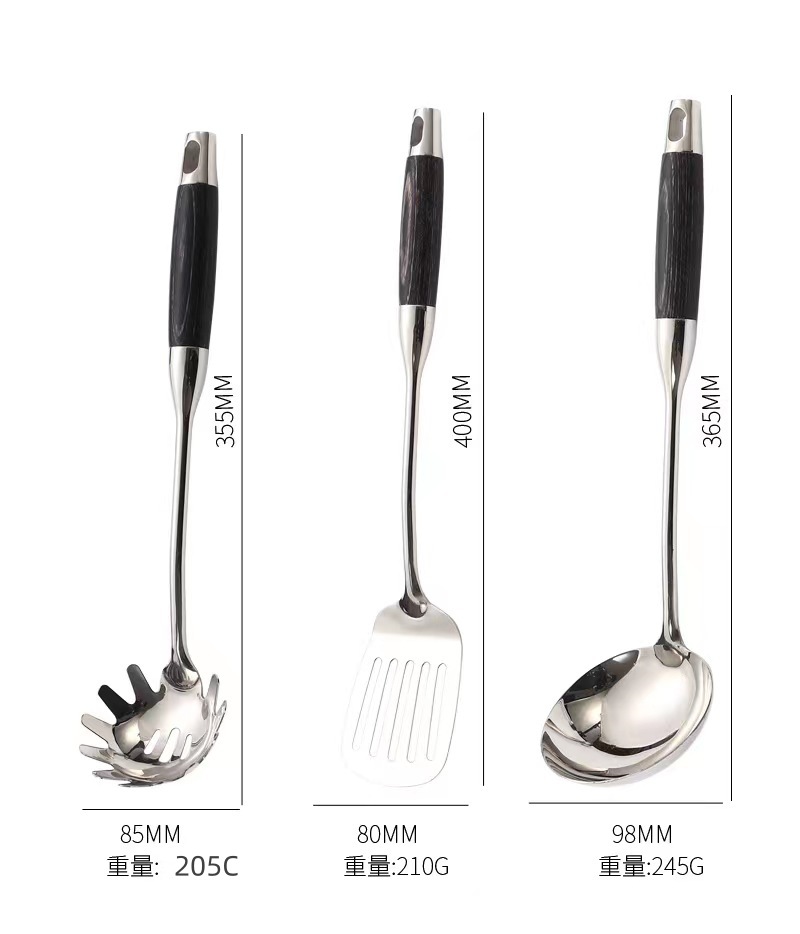 316 스테인레스 스틸 주걱 수프 숟가락 가정용 주방 요리 도구 주방 용품 전체 세트 가벼운 고급 흑단 조리기구 세트