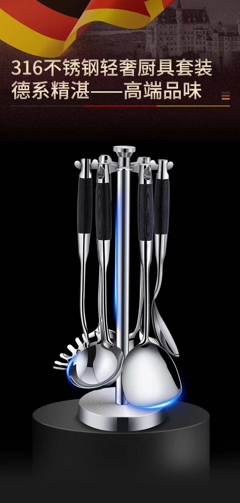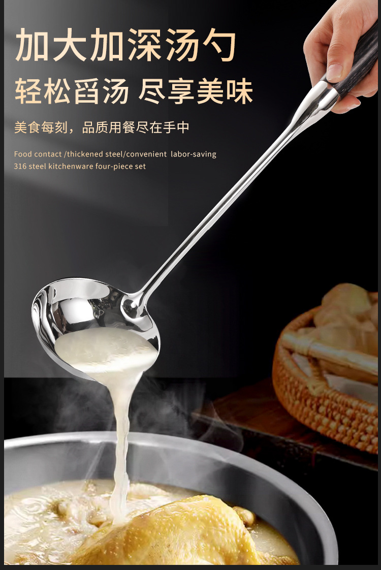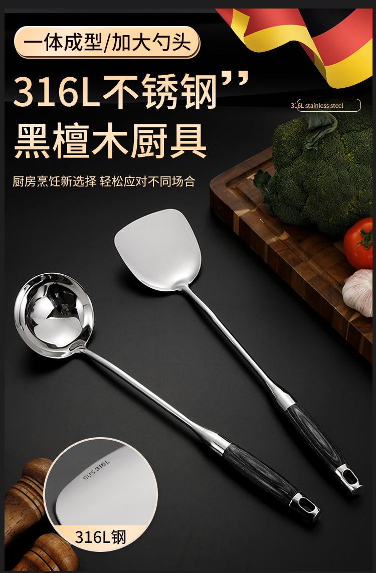 316 스테인레스 스틸 주걱 수프 숟가락 가정용 주방 요리 도구 주방 용품 전체 세트 가벼운 고급 흑단 조리기구 세트스토어 가기
