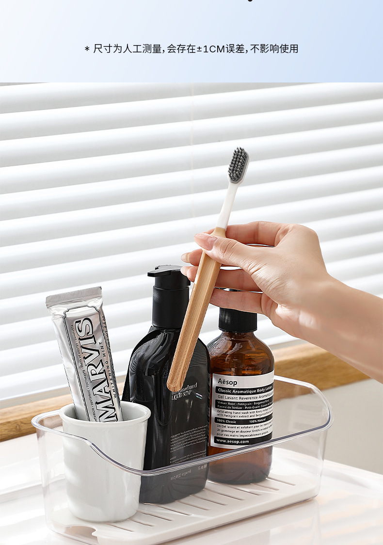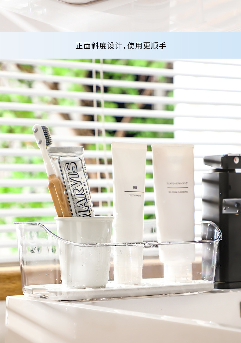 일본식 간단한 화장품 및 스킨 케어 보관 및 정렬 상자에 의한 드레인 트레이 배수 보관 상자가있는 보관 상자스토어 가기