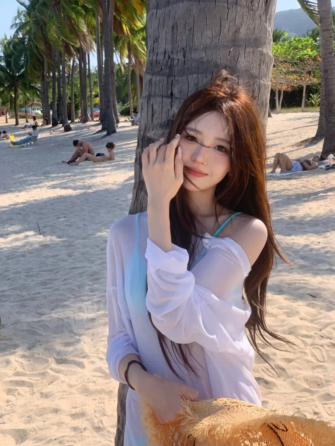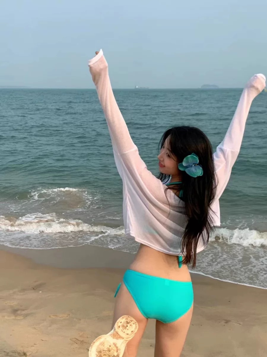 수영복 여성 해변 휴가 분할 비키니 삼각형 3 개 세트 외부 블라우스 느슨한 섹시한 선스크린스토어 가기