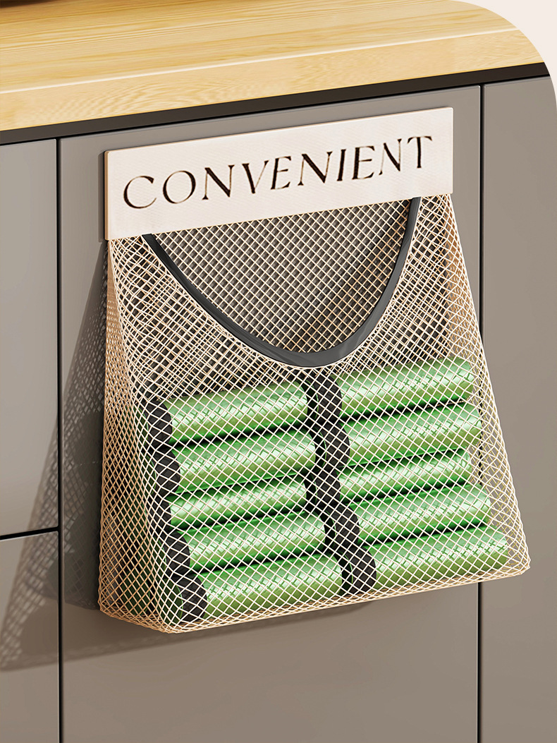 가벼운 고급 저장 그물 가방 메시 가방 주방 보관 가방 벽걸이 쓰레기 봉투 보관 아티팩트 그리드 보관 가방
