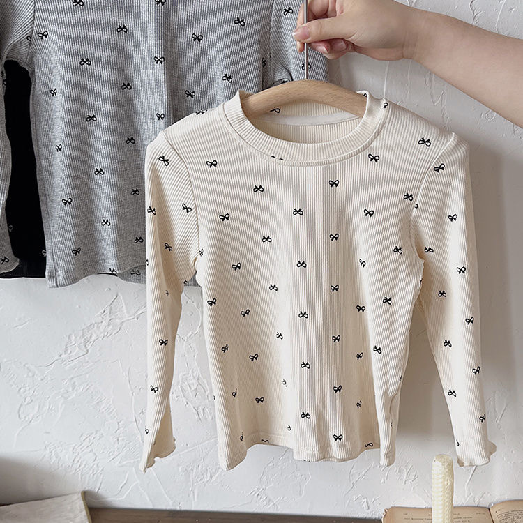 봄과 가을 아기 소녀 새로운 티셔츠 스트레치 캐주얼 소녀 한국 활 유치원 긴 소매 기지 셔츠