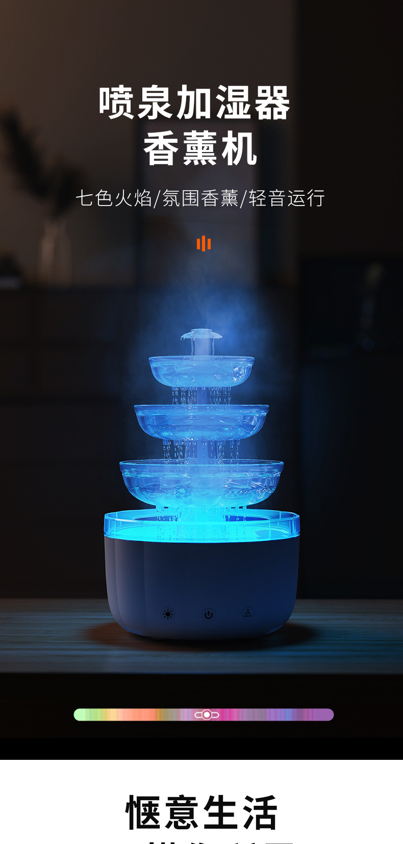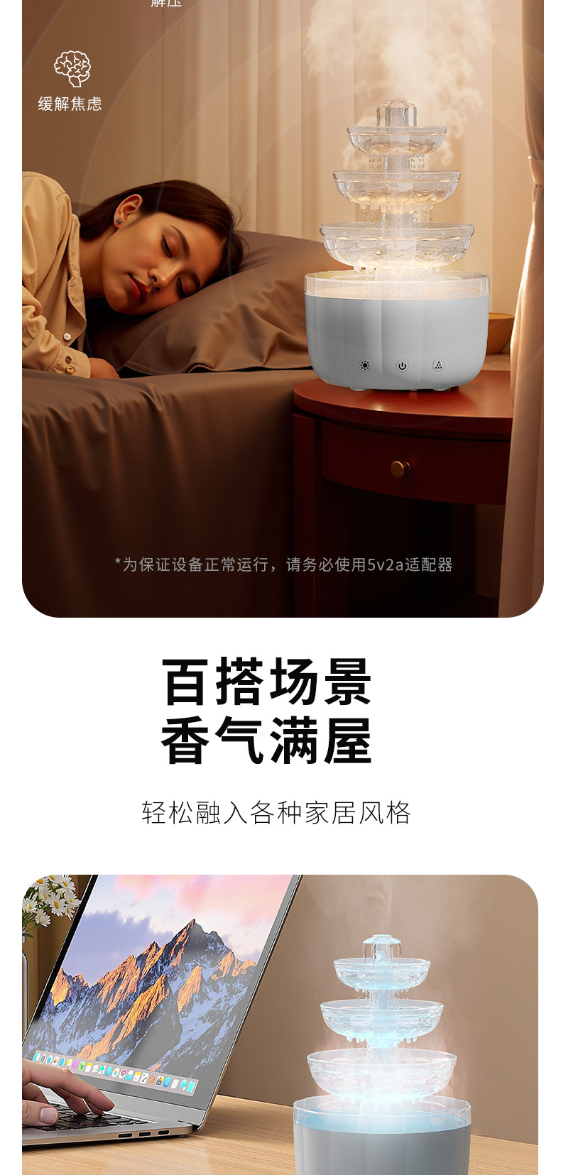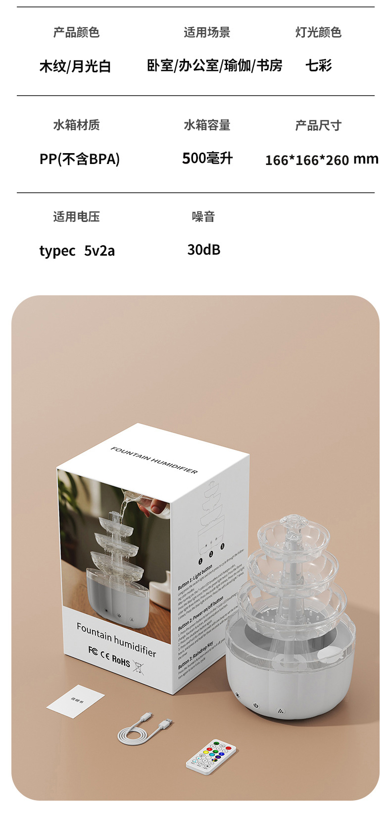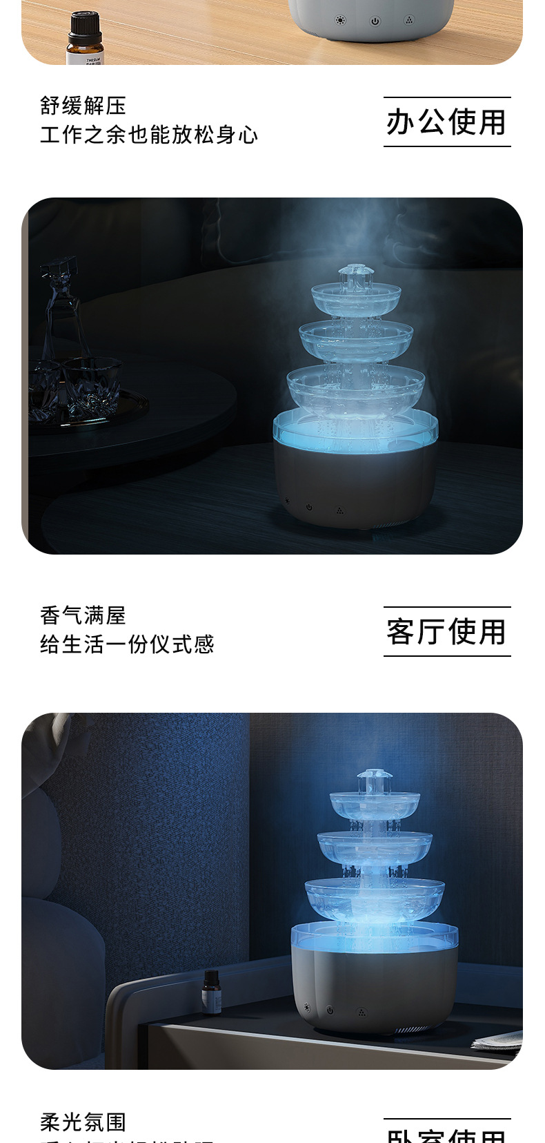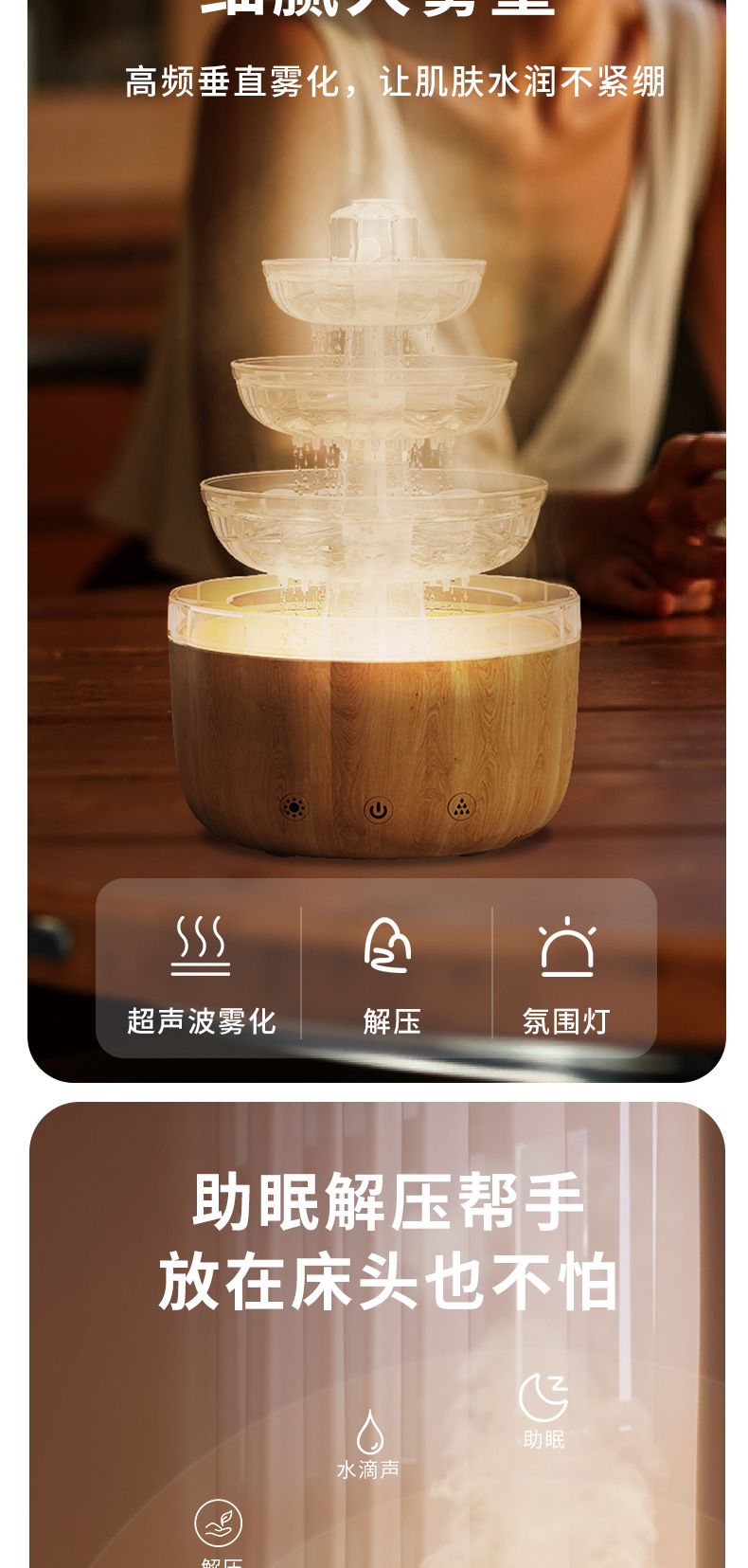 국경을 넘는 분수 물방울 가습기 가정용 사무실용 아로마 디퓨저 공기 수분 공급 USB 대용량 무소음스토어 가기