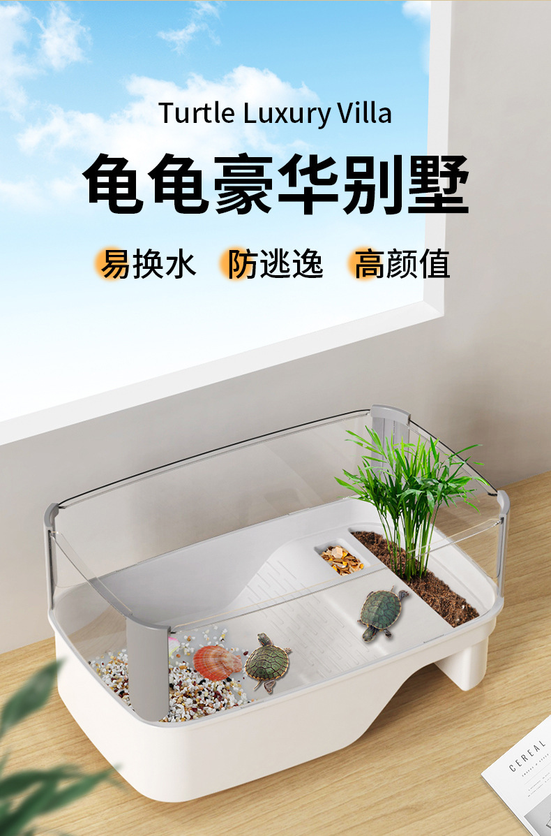 탱크 올리기 위한 바구니 테이블이있는 거북이 탱크 특수 어항 브라질 거북이 상자 집 빌라 거실 작은 가정용 집