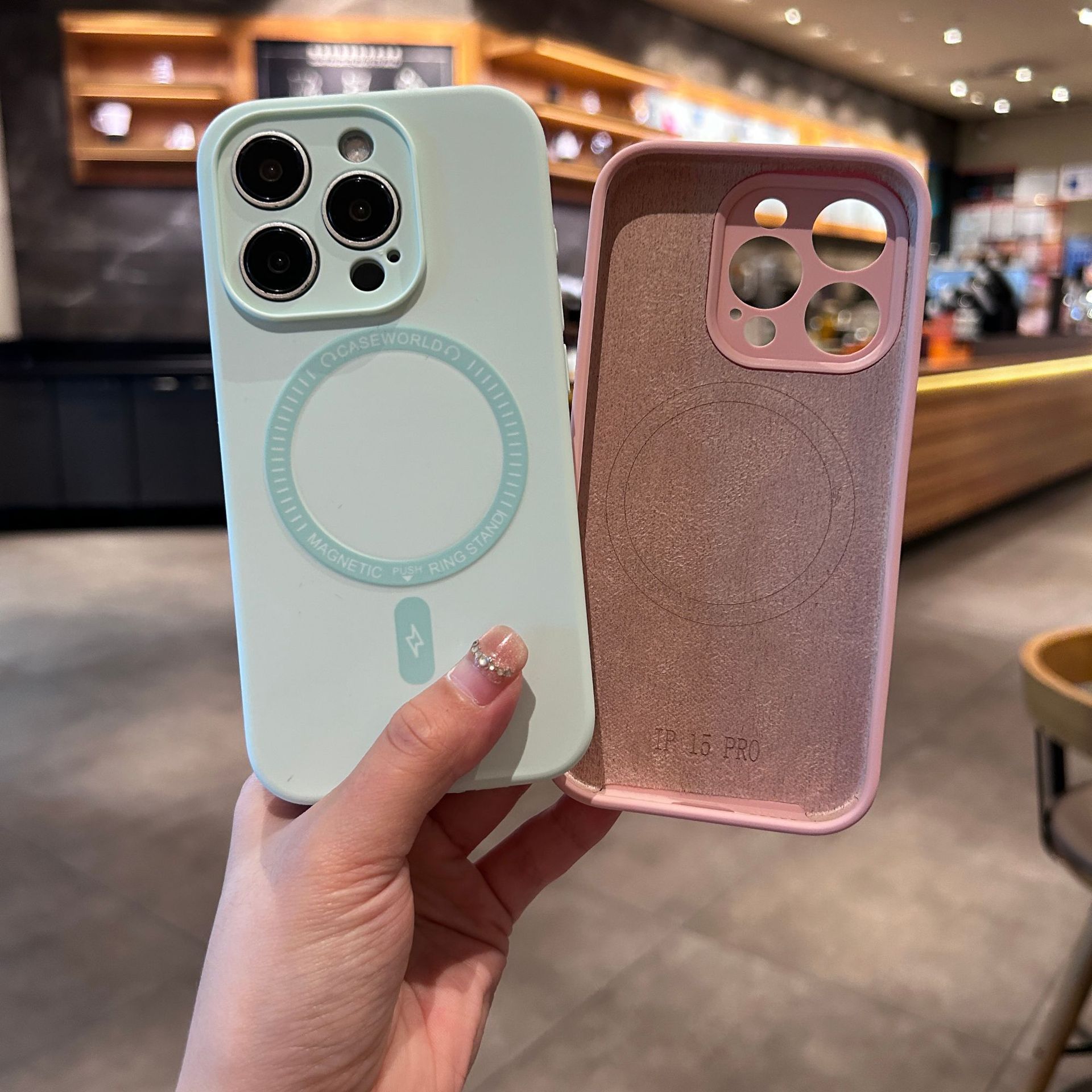 Apple 17 Promax 액체 실리콘 자석 흡착 휴대폰 케이스 iPhone 16에 적합, 정밀 구멍이 있는 완벽한 커버, 15 무선 충전 지원스토어 가기