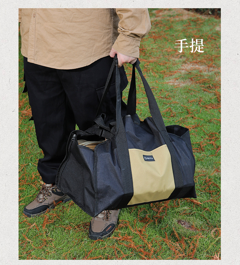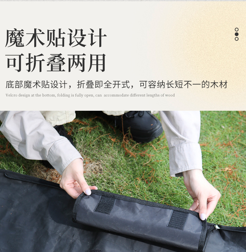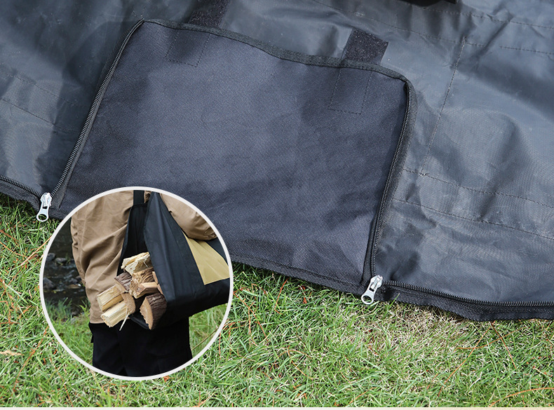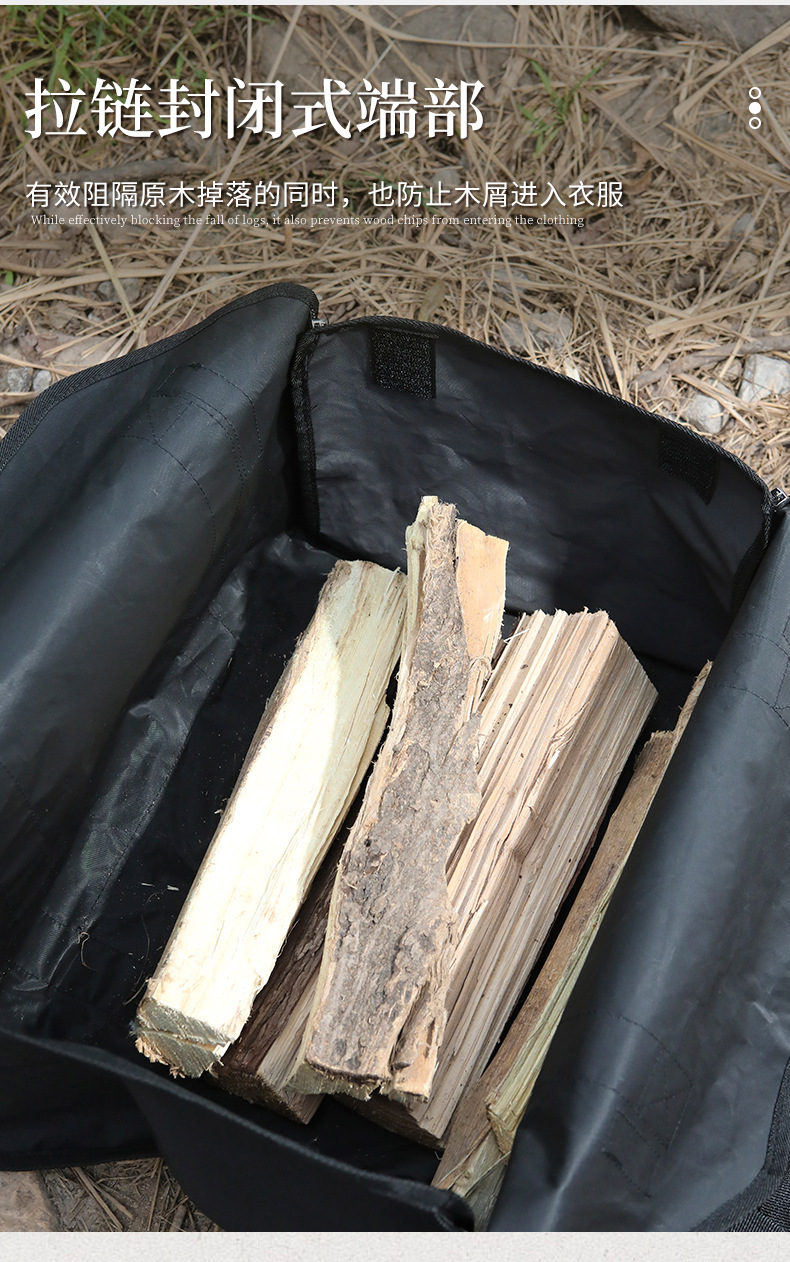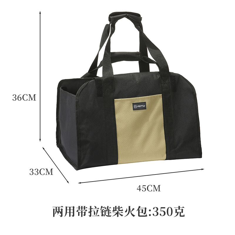 Dual purpose zipper firewood bag: bottom length 45cm, width 33cm, height 36cm