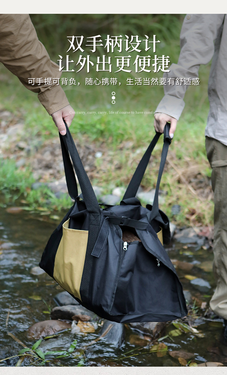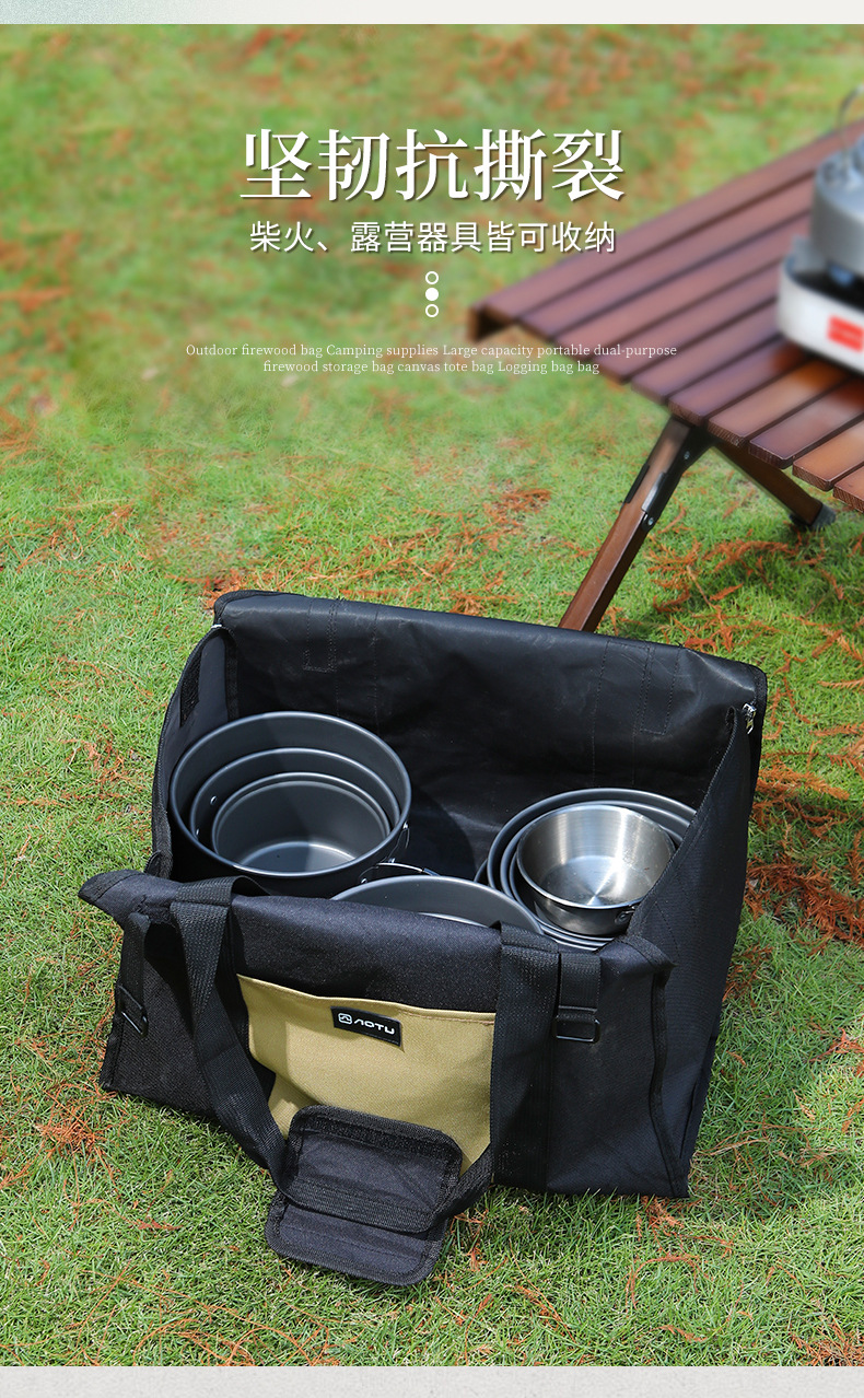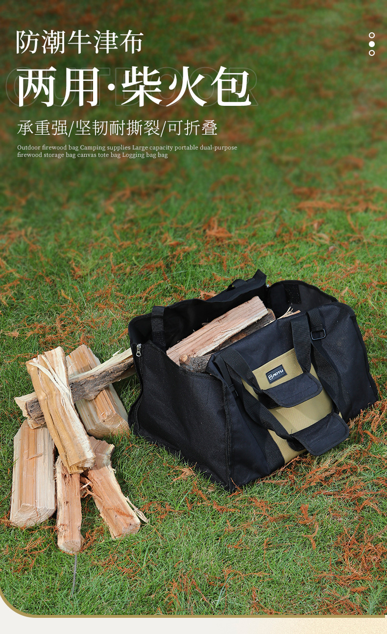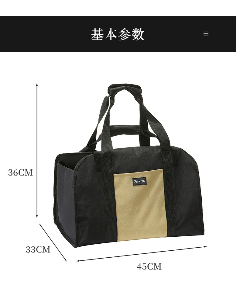 Dual purpose zipper firewood bag: bottom length 45cm, width 33cm, height 36cm