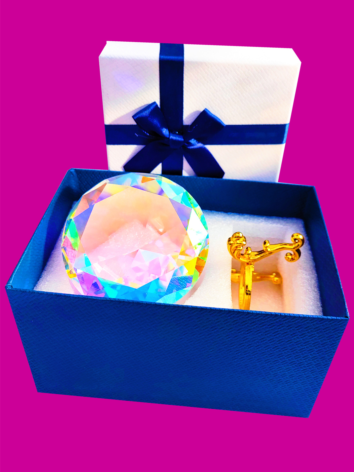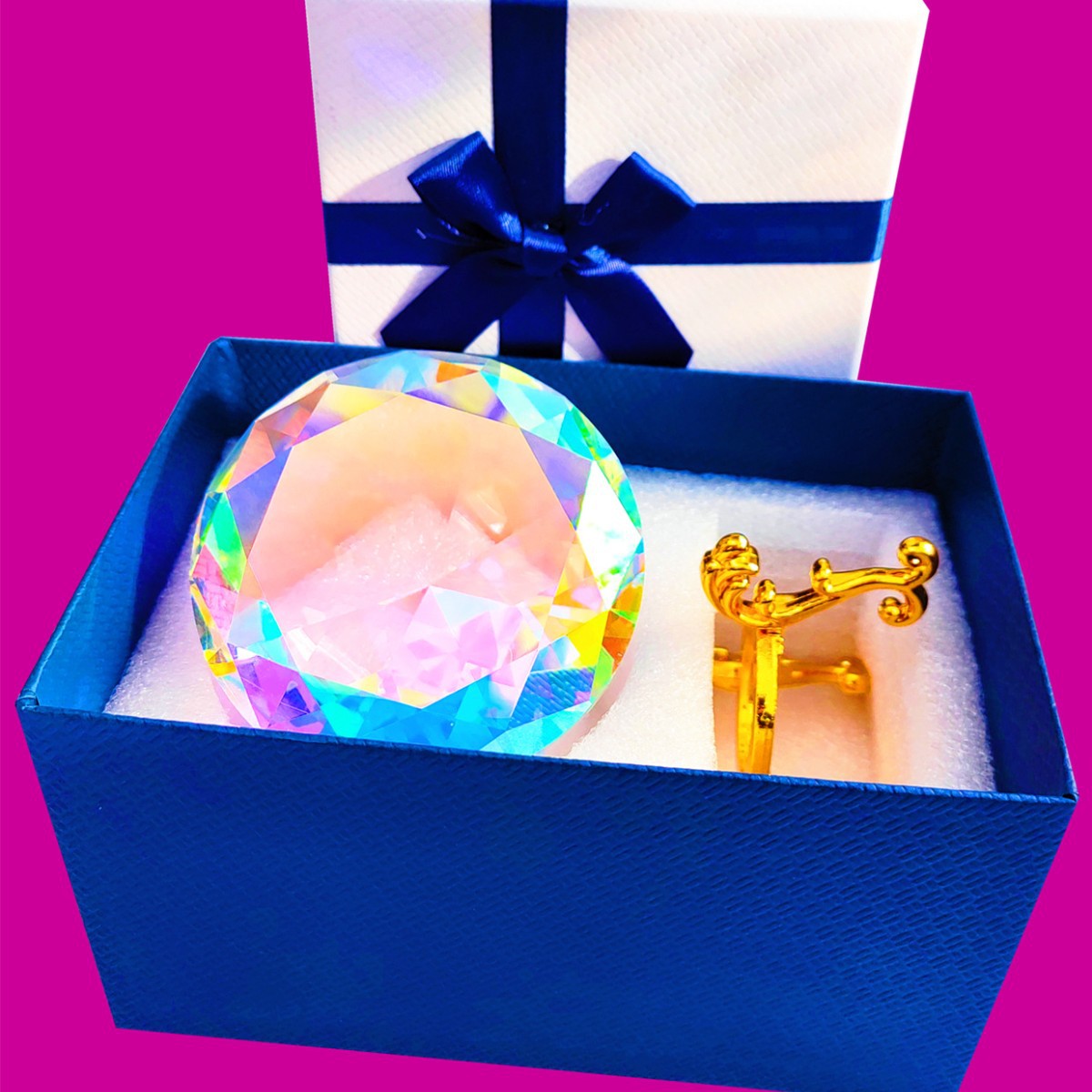 • 8cm 다채로운 다이아몬드 + 크리스탈 베이스 + 선물 상자