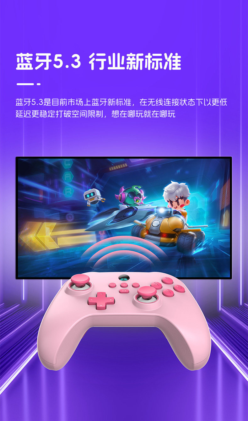 5.蓝牙5.3使手柄在无线连接状态下以更低延迟更稳定打破空间限制。