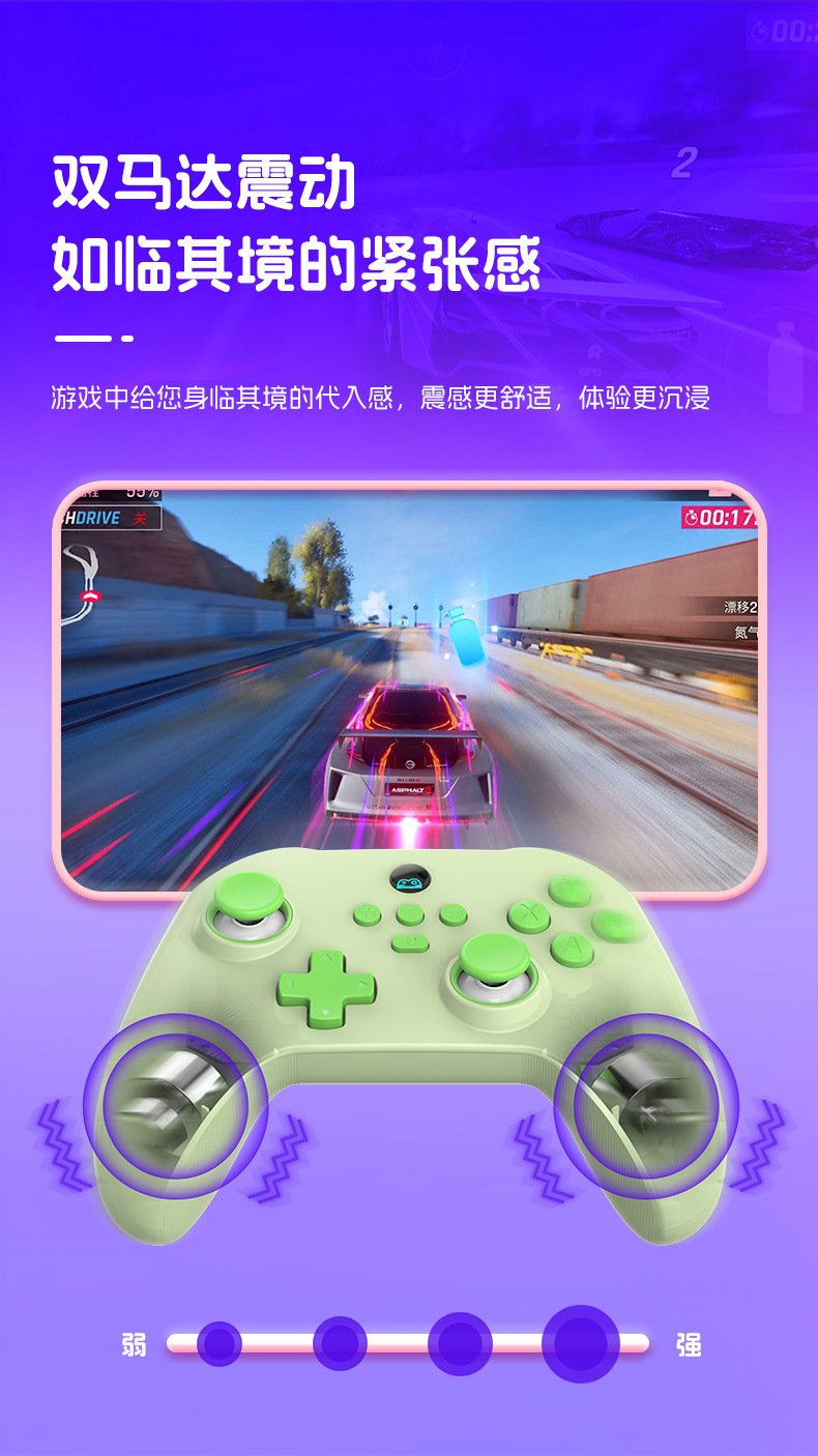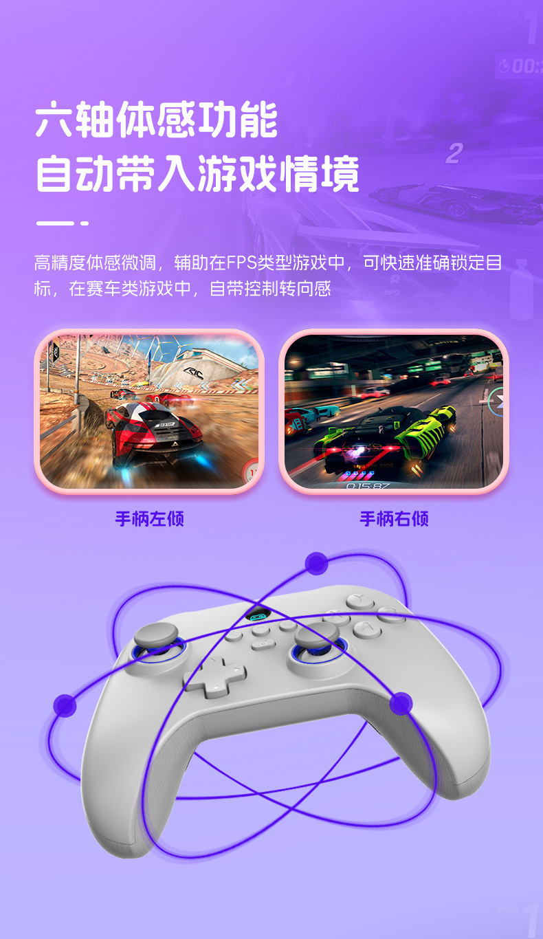 3.支持宏编程、六轴体感、双马达震动、TURBO连发功能。