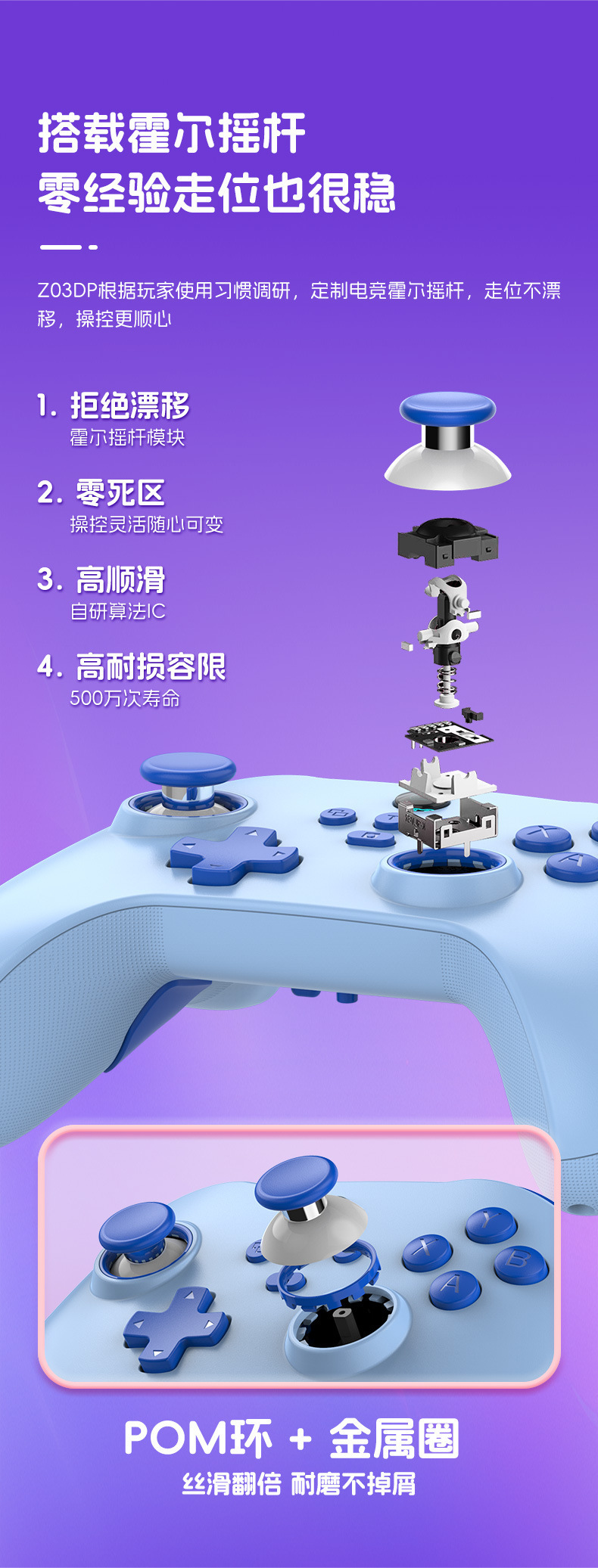 双摇杆配备POM环+金属圈,丝滑翻倍,耐磨不掉。