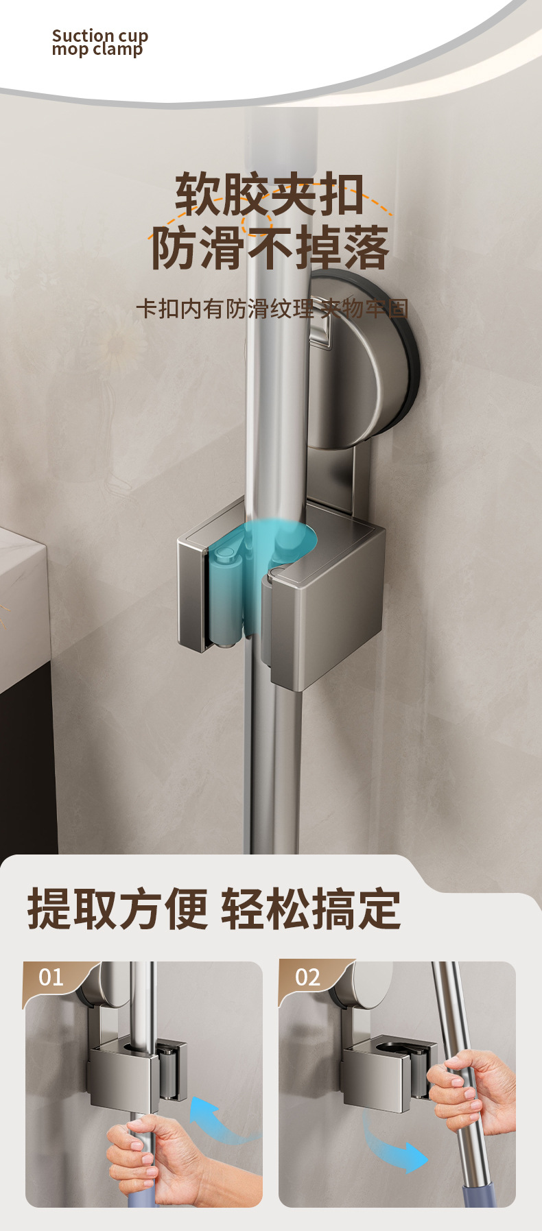 • 싱글 건 그레이 흡입 컵 걸레 홀더