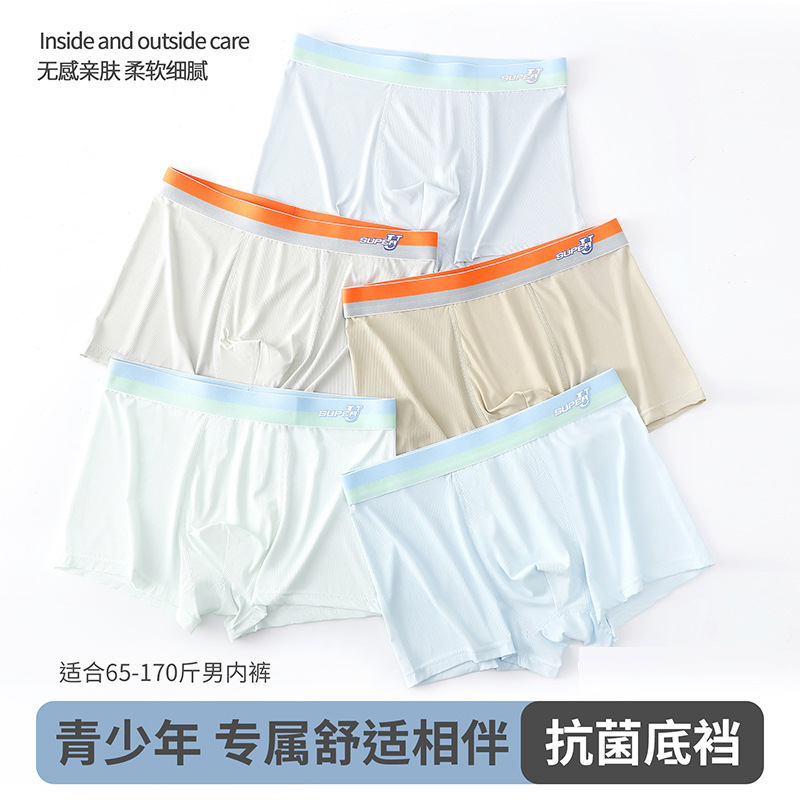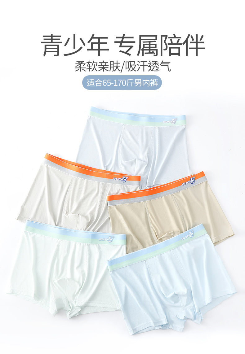 Love Nian Love Fun 어린이 속옷 소년의 여름 아이스 실크 복서 반바지 추적없는 십대 중학생 복서 반바지스토어 가기