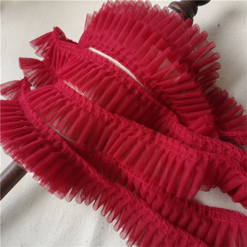 5cm 넓은 멀티 컬러 더블 레이어 메쉬 주름 레이스 액세서리 의류 애완 동물 인형 DIY 손으로 만든 장식