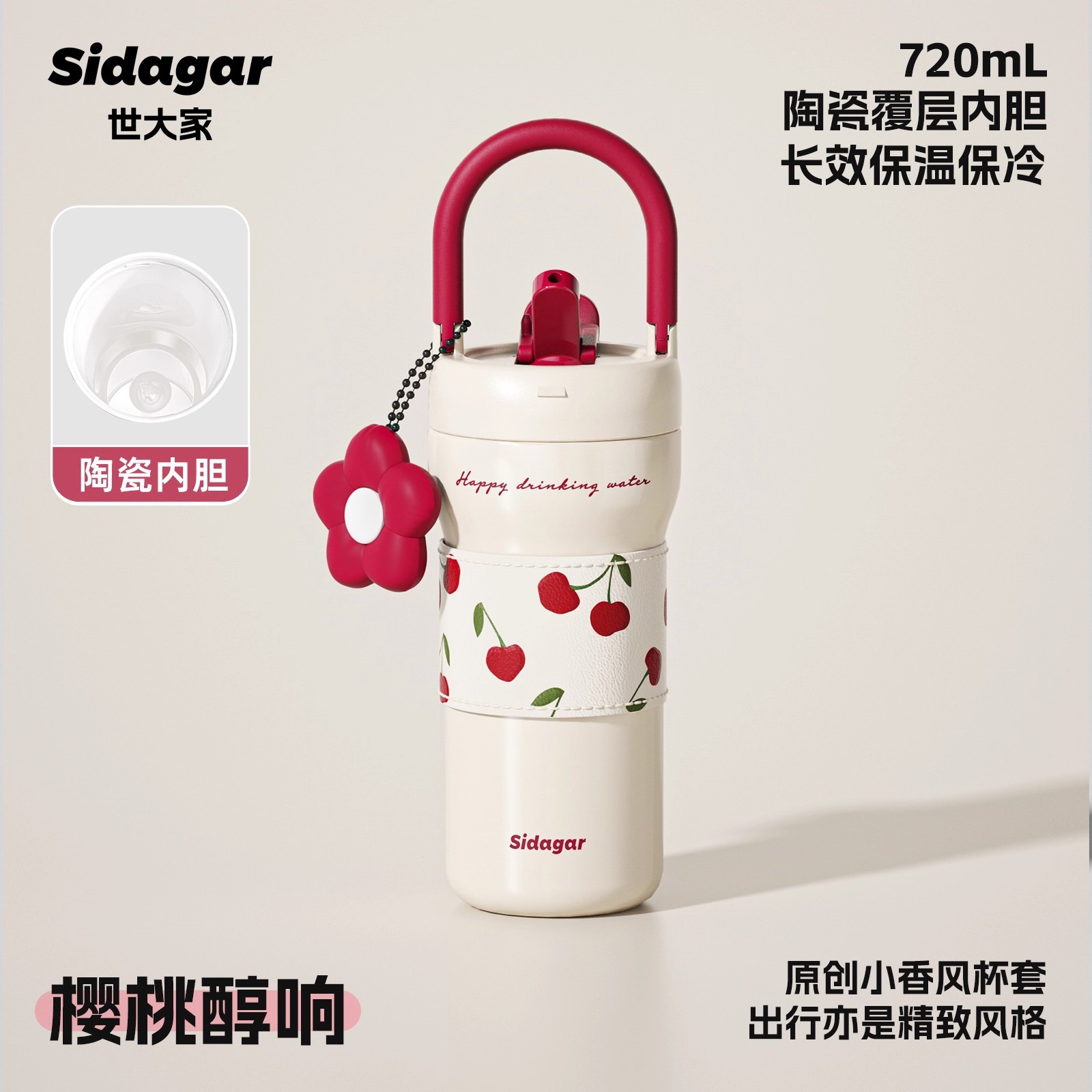 시다 보온병 컵 여자의 2024 새로운 고 가치 커피 컵 함께 컵 스테인레스 스틸 운반 컵스토어 가기