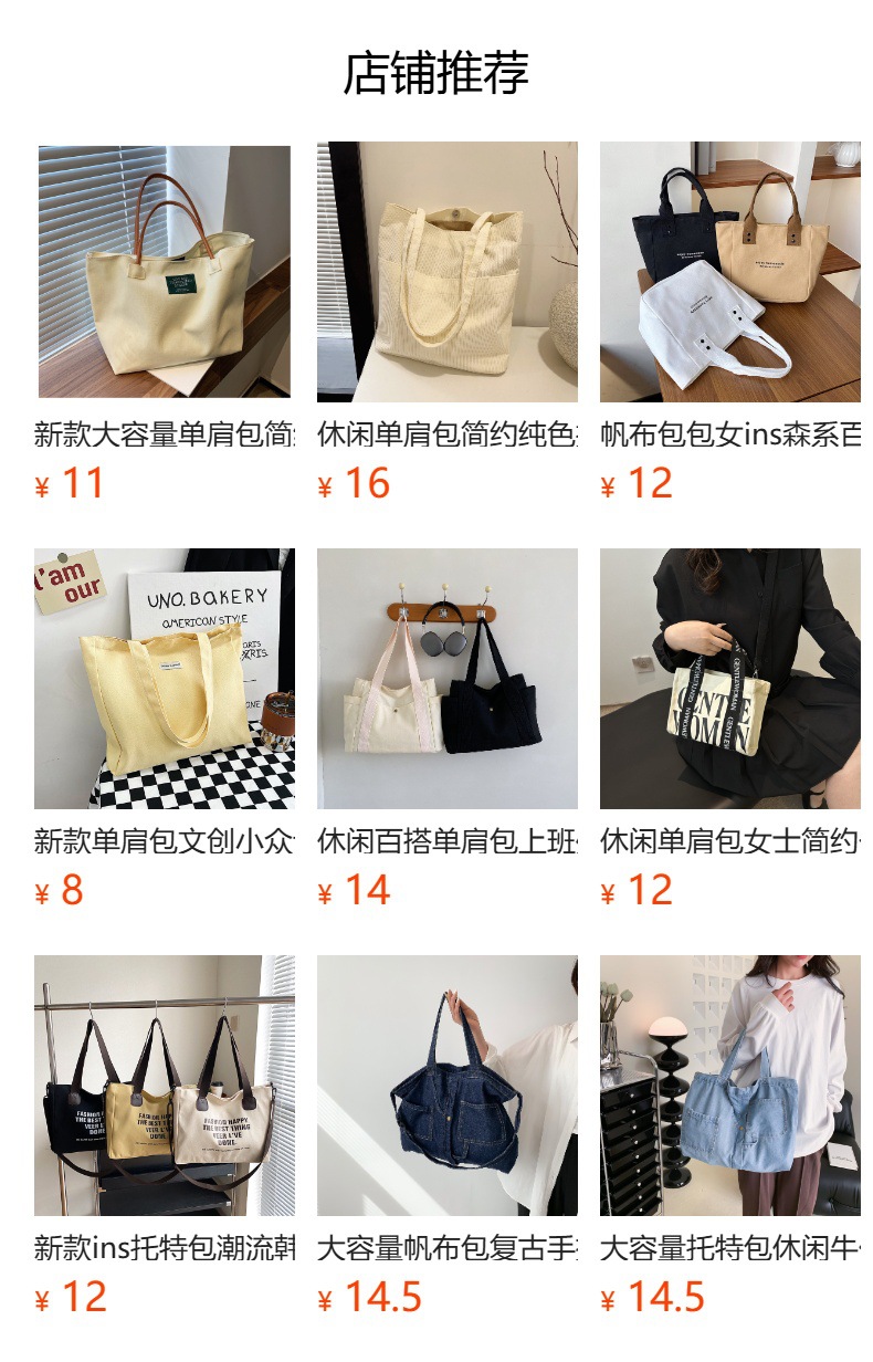 대용량 캔버스백 레트로 핸드백 캐주얼 숄더백 데님백 컬리지 스타일 패션 만능 토트백 여성용스토어 가기