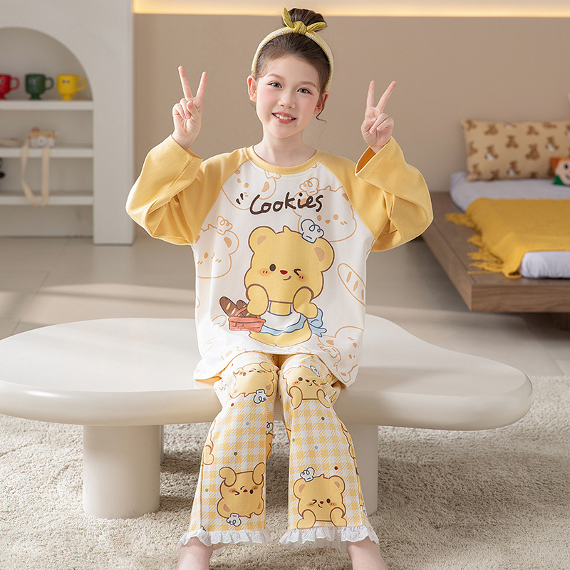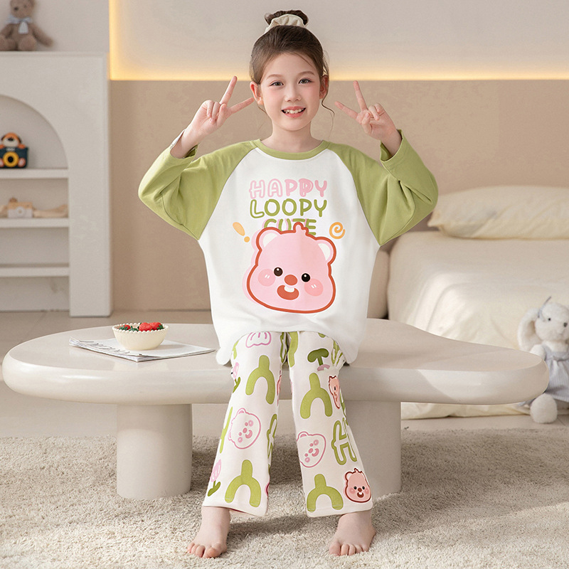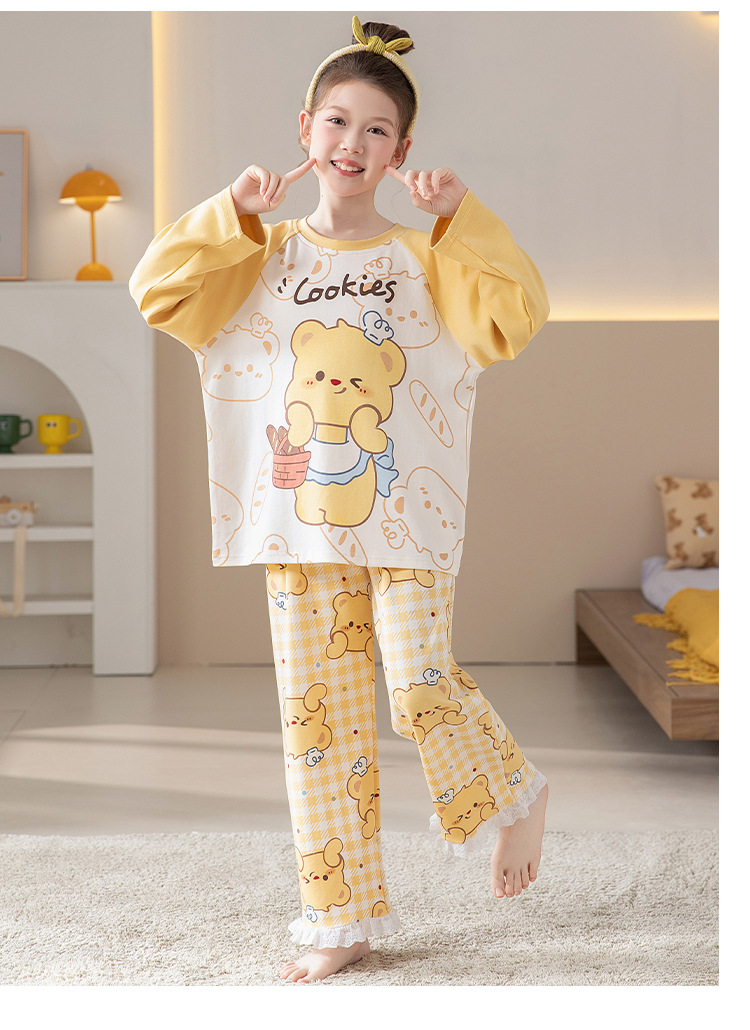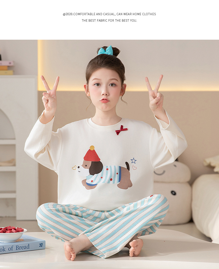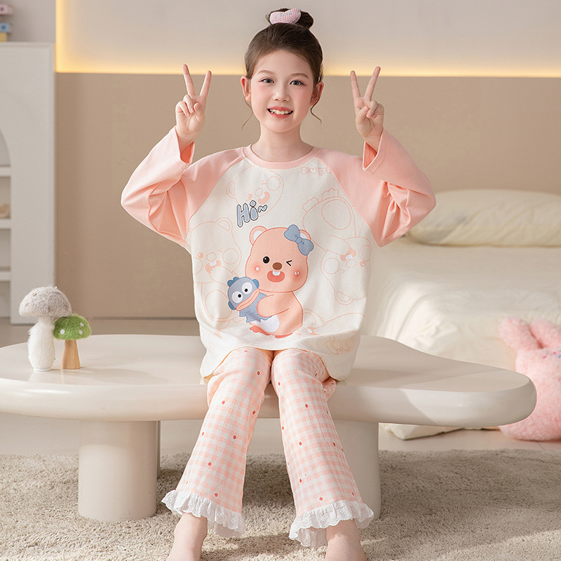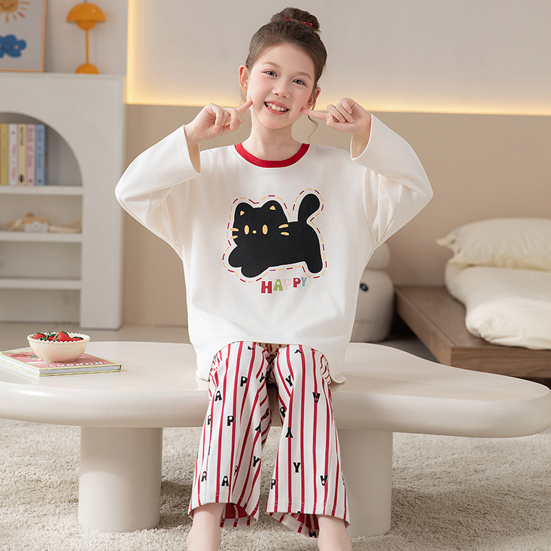 여아 잠옷 봄 가을 100% 순면 긴팔 귀여운 아동 홈웨어 중대형 어린이 소녀 청소년 세트