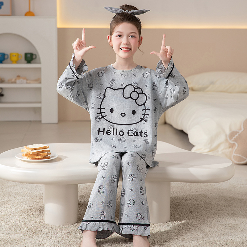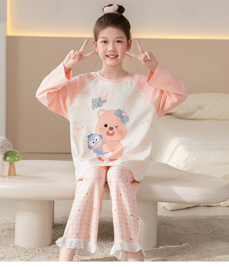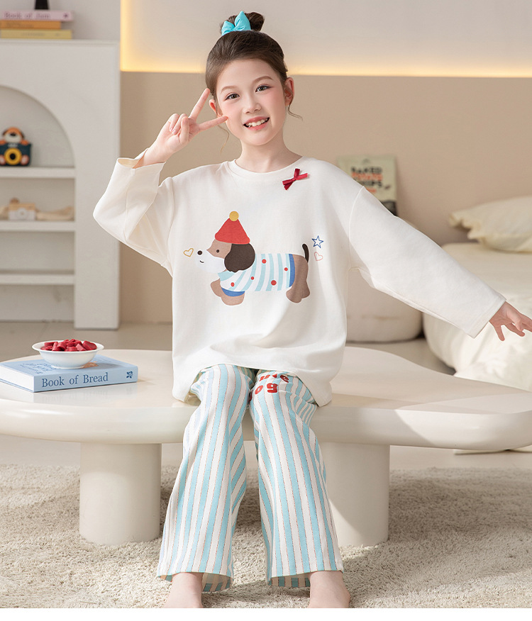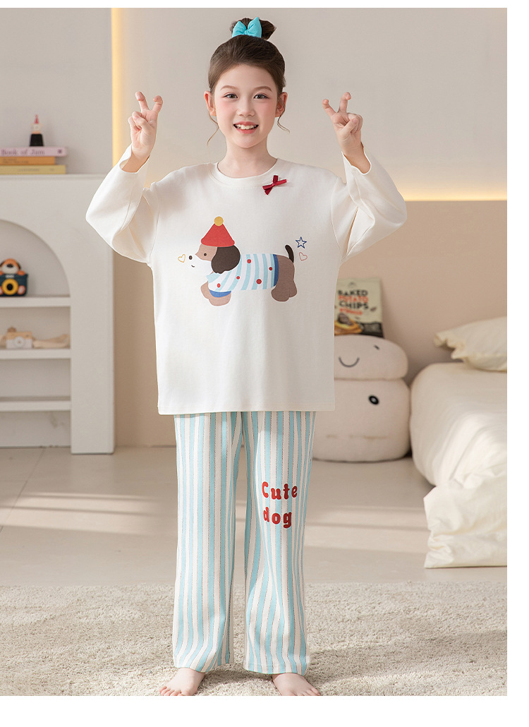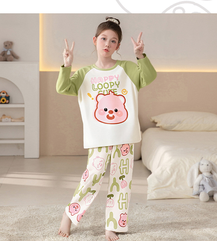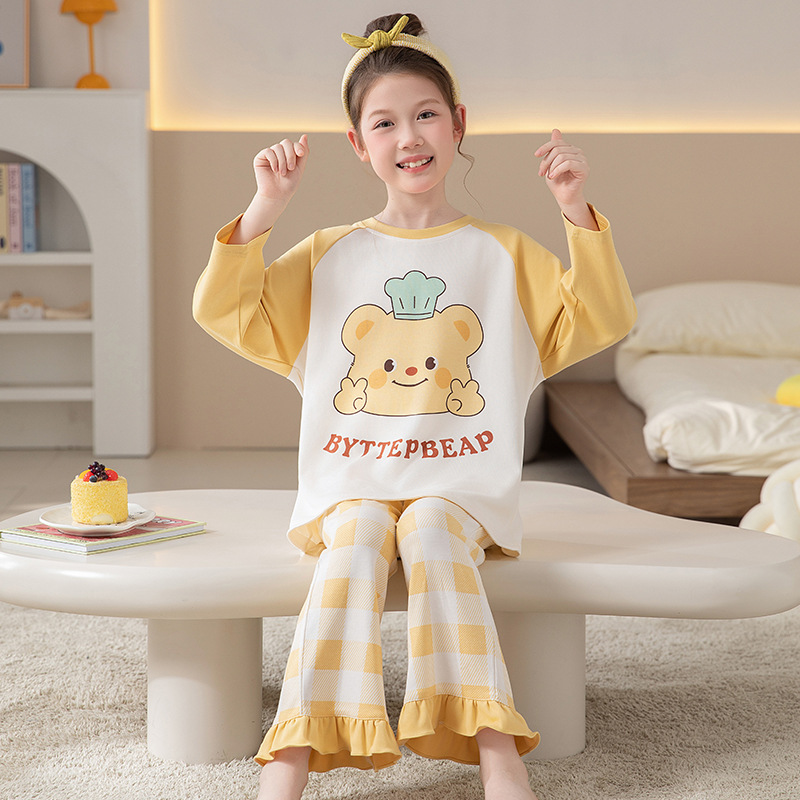 여아 잠옷 봄 가을 100% 순면 긴팔 귀여운 아동 홈웨어 중대형 어린이 소녀 청소년 세트