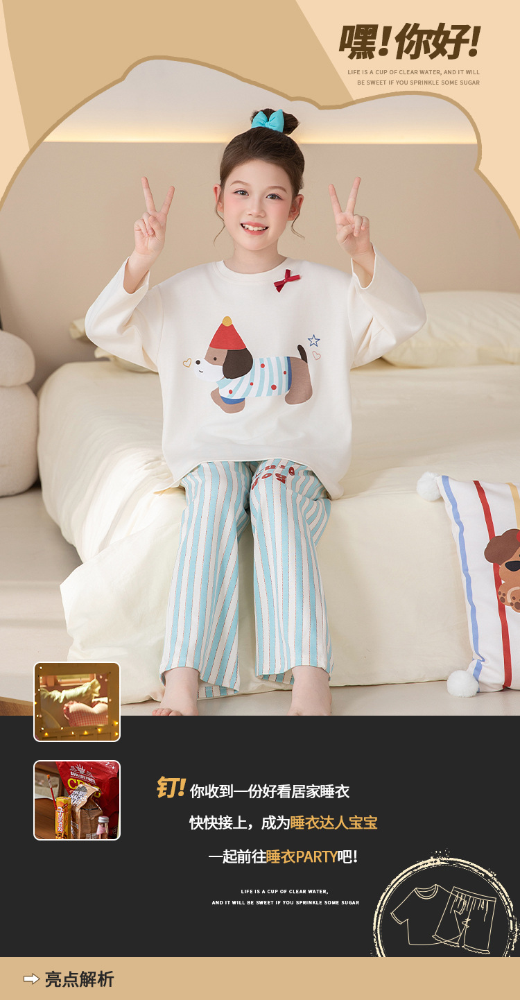 여아 잠옷 봄 가을 100% 순면 긴팔 귀여운 아동 홈웨어 중대형 어린이 소녀 청소년 세트스토어 가기