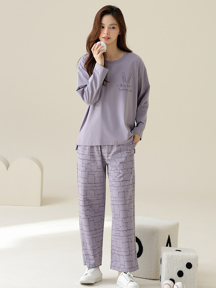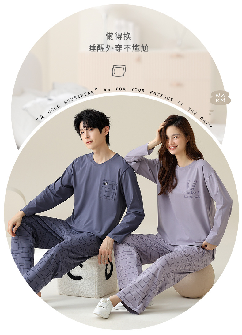 커플 잠옷, 가을용 순면 긴팔, 루즈핏, 큰 사이즈, 홈웨어, 외출복으로도 착용 가능, 봄/가을용 남녀 공용 잠옷