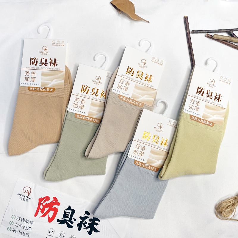 양말 남성 단색 튜브 양말 아로마 테라피 탈취 땀 흡수 비즈니스 양말 가을 두꺼운 남성과 여성 스타킹 조수 양말 도매스토어 가기