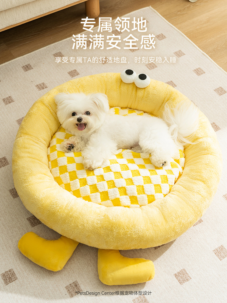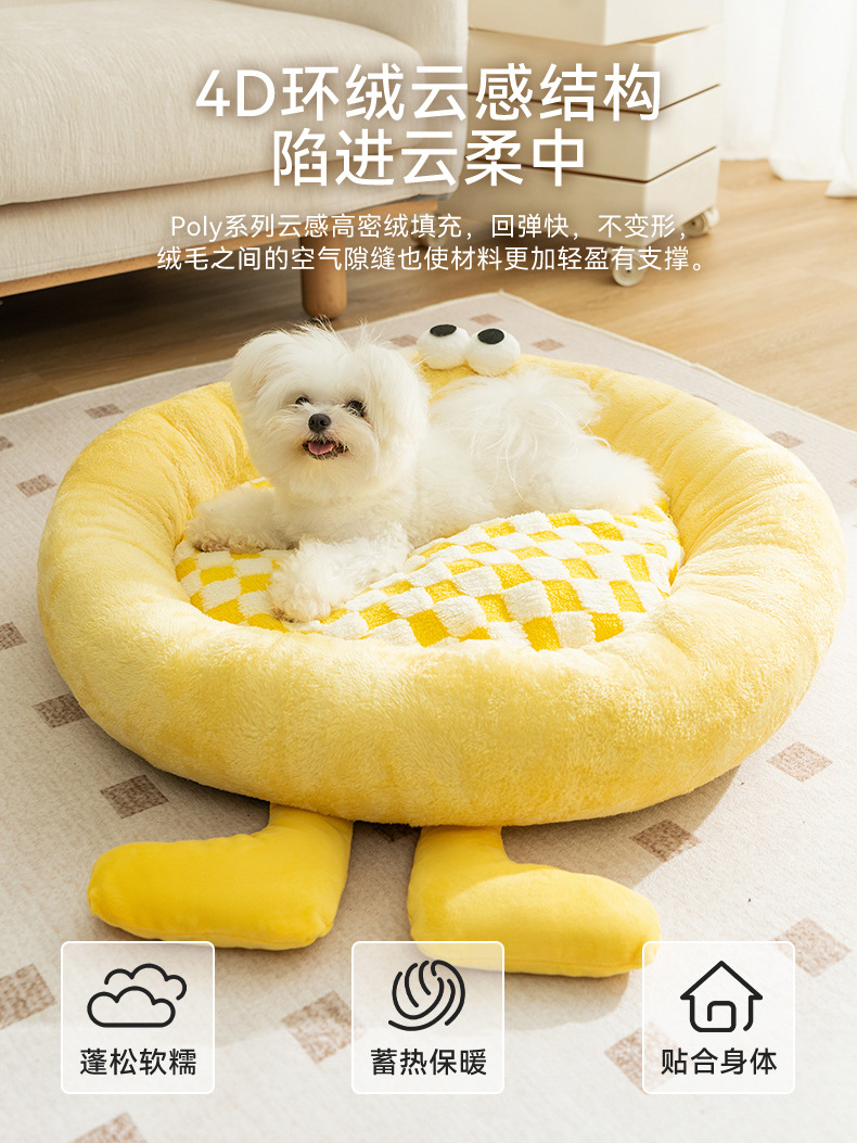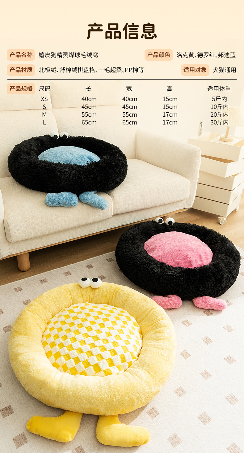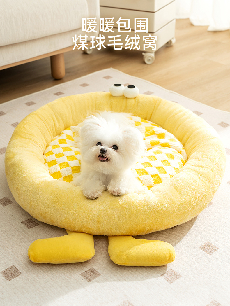 노란 엘프 석탄 공 봉제 둥지 3 차원 큰 눈 개 고양이 가을과 겨울 둥지 패드 개 둥지 고양이 둥지 애완 동물 용품스토어 가기